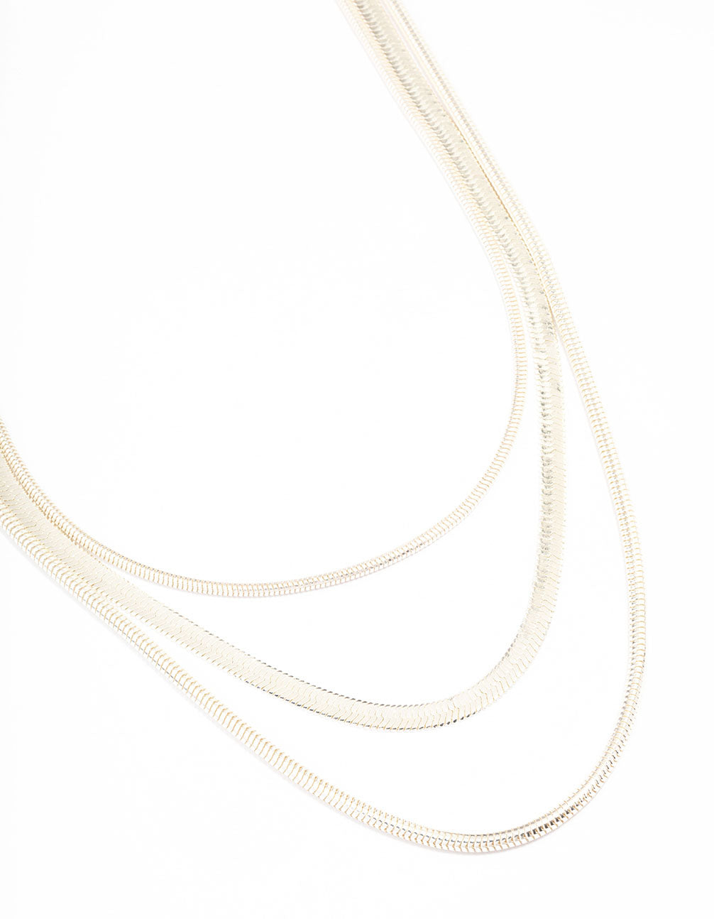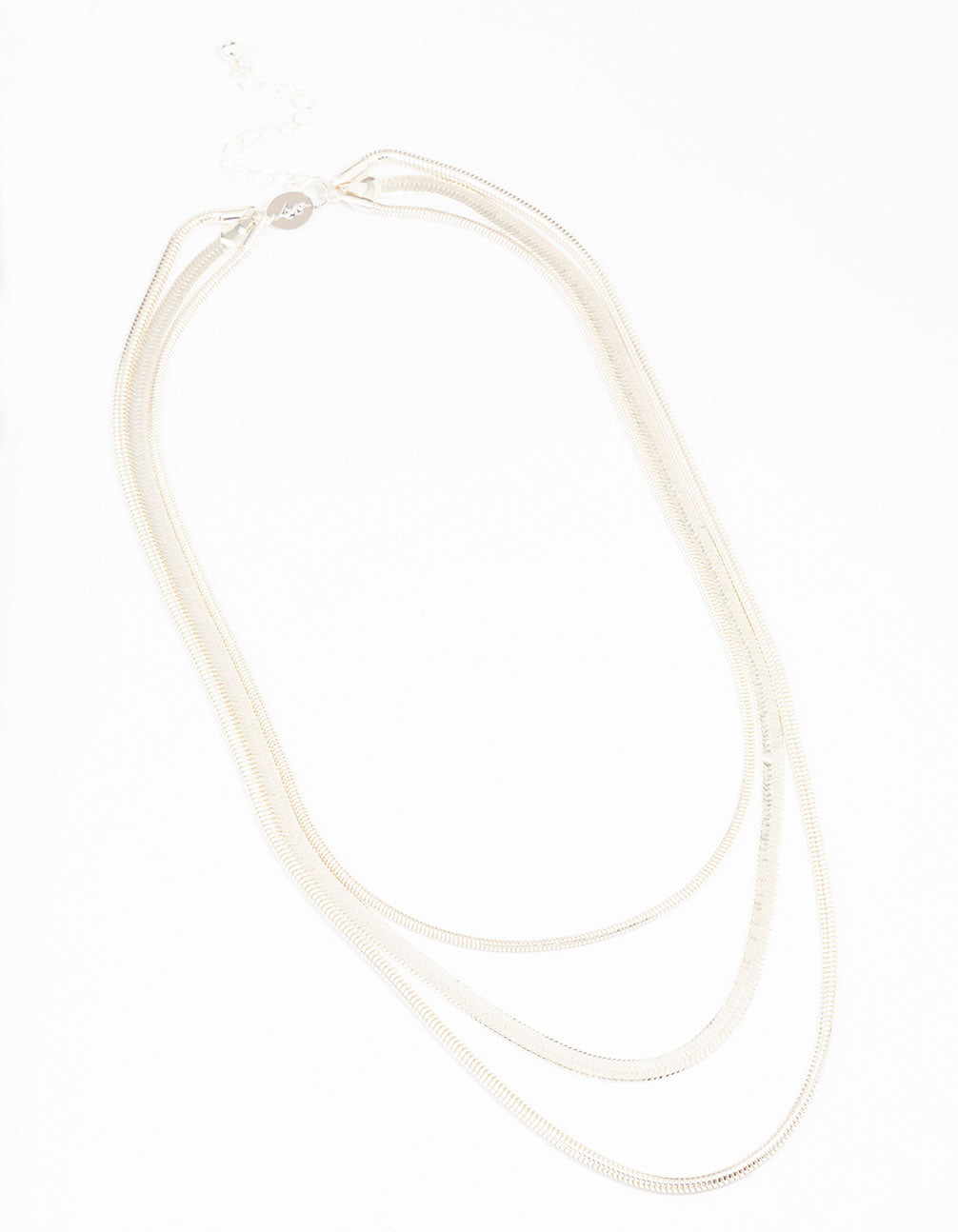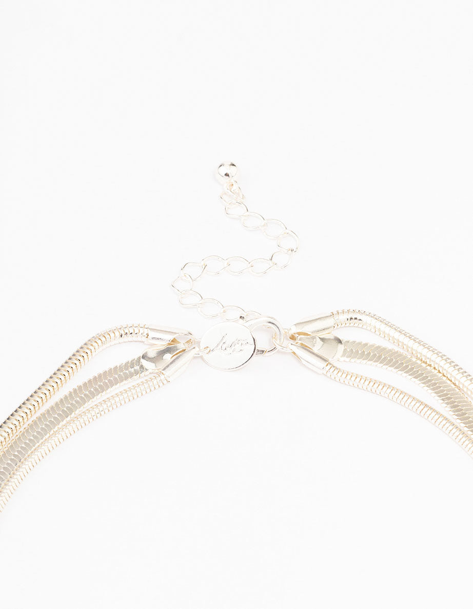 This classic layered necklace features a silver setting and three rows of snake chains, perfect for adding detail to your look.