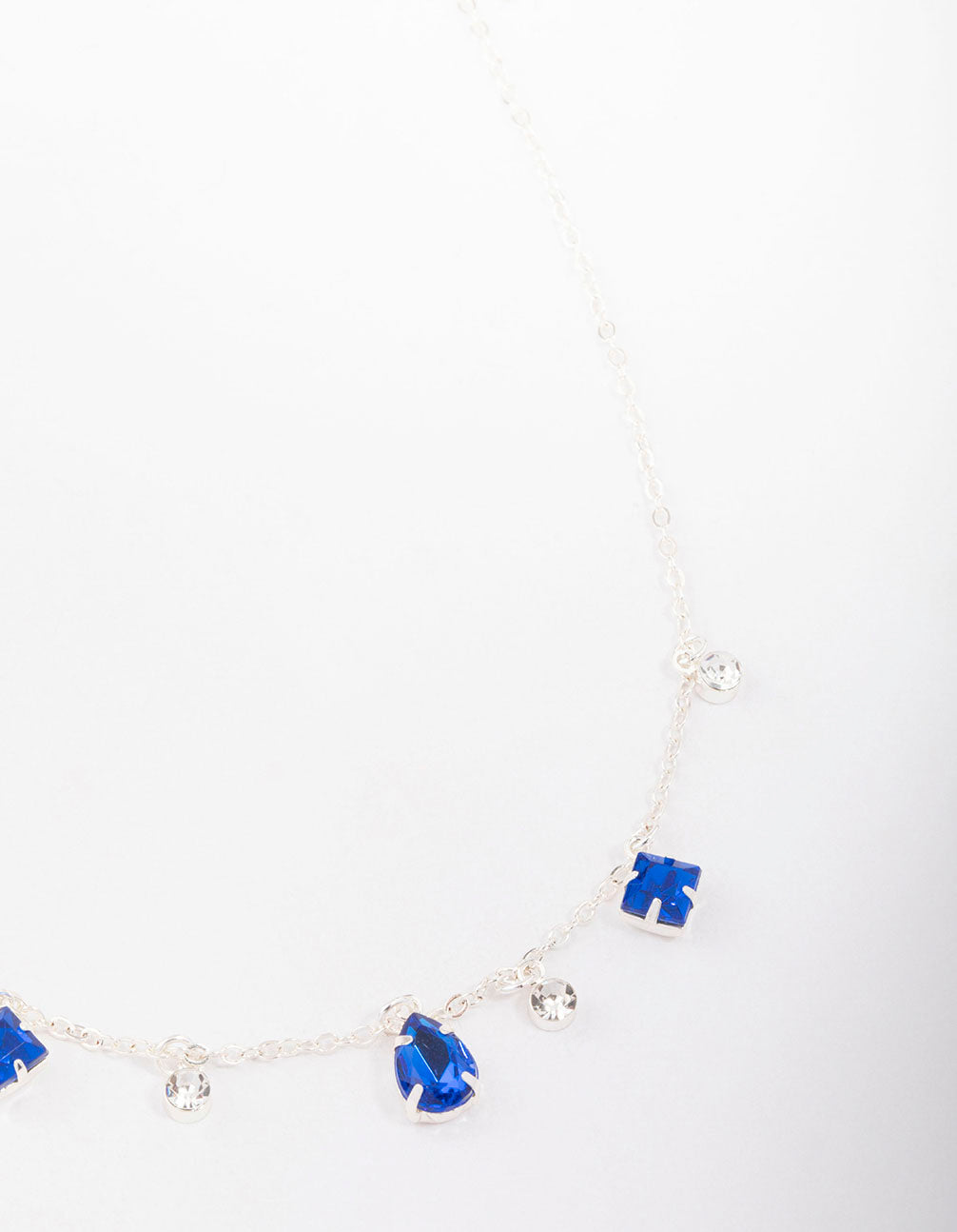 Silver Pear Round Square Stone Necklace