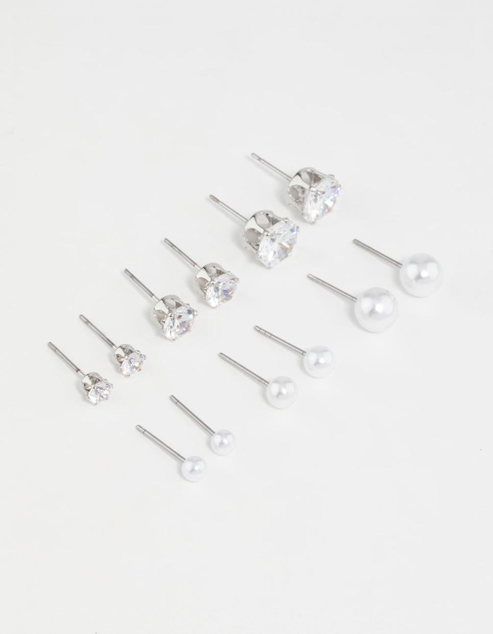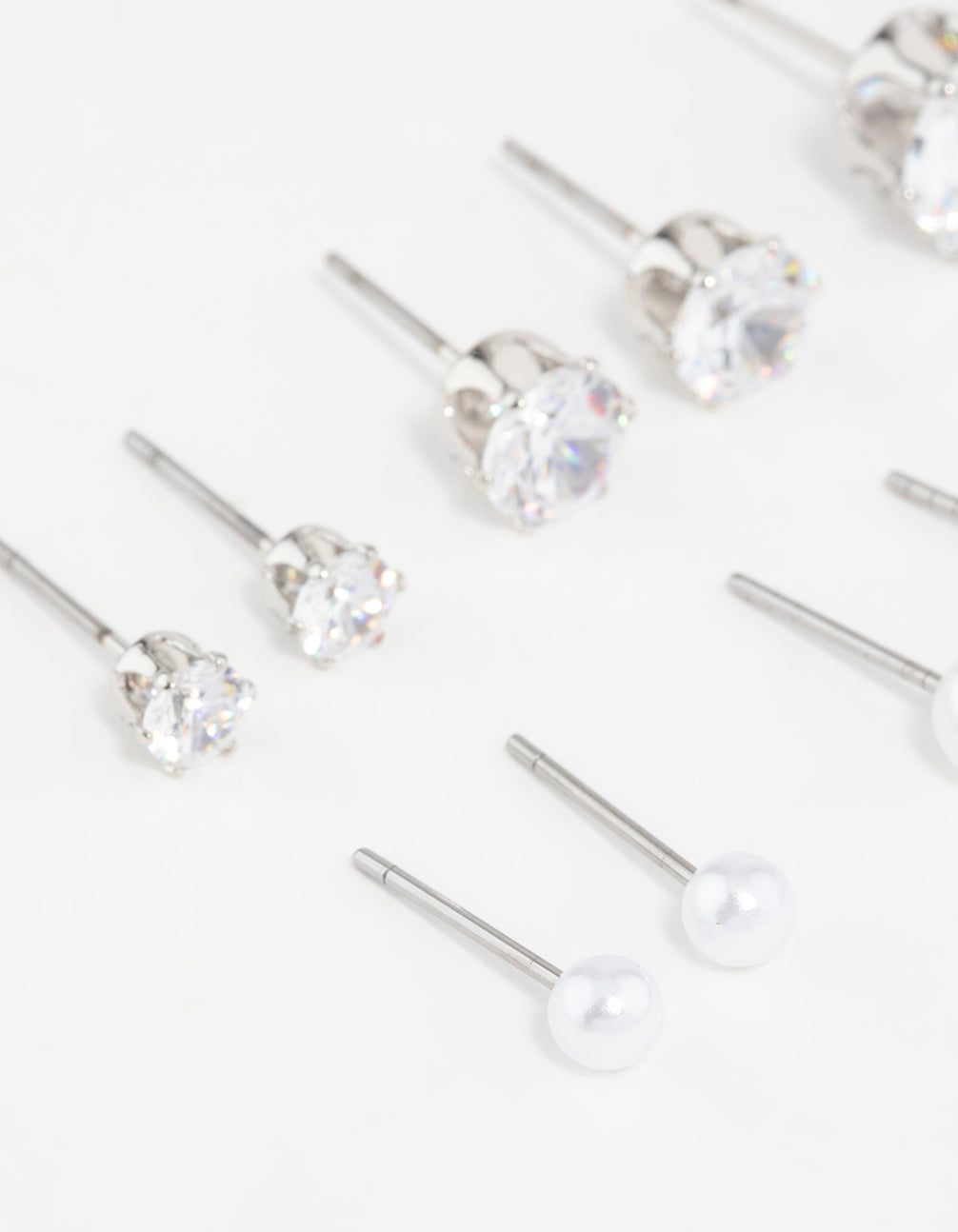 Silver Pearl & Cubic Zirconia Stud Earrings 6-Pack Silver Pearl & Cubic Zirconia Stud Earrings 6-Pack Silver Pearl & Cubic Zirconia Stud Earrings 6-Pack
