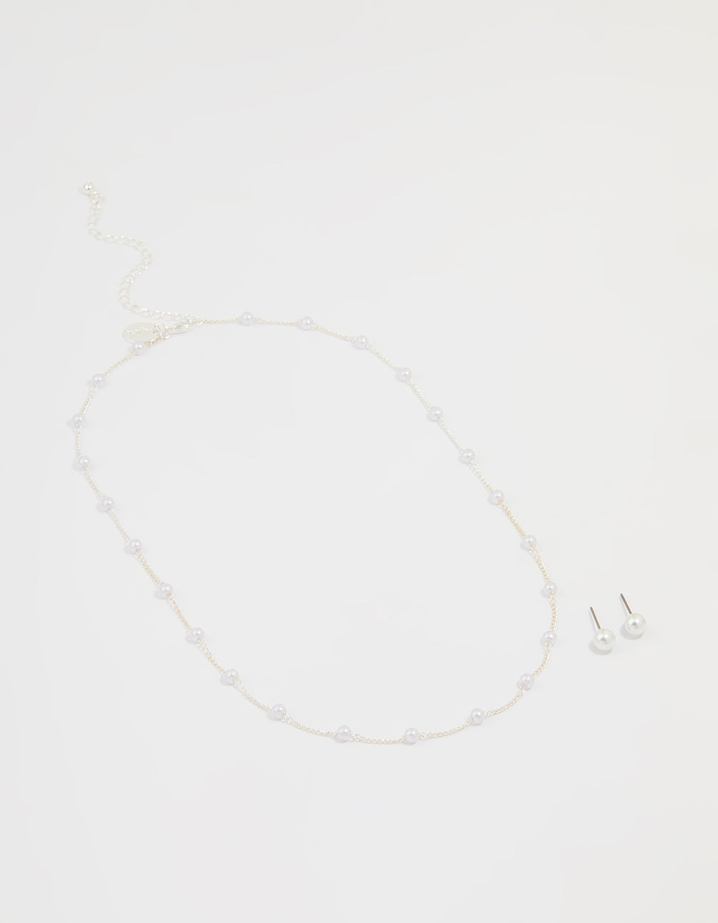 Silver Pearl Necklace & Earrings Set