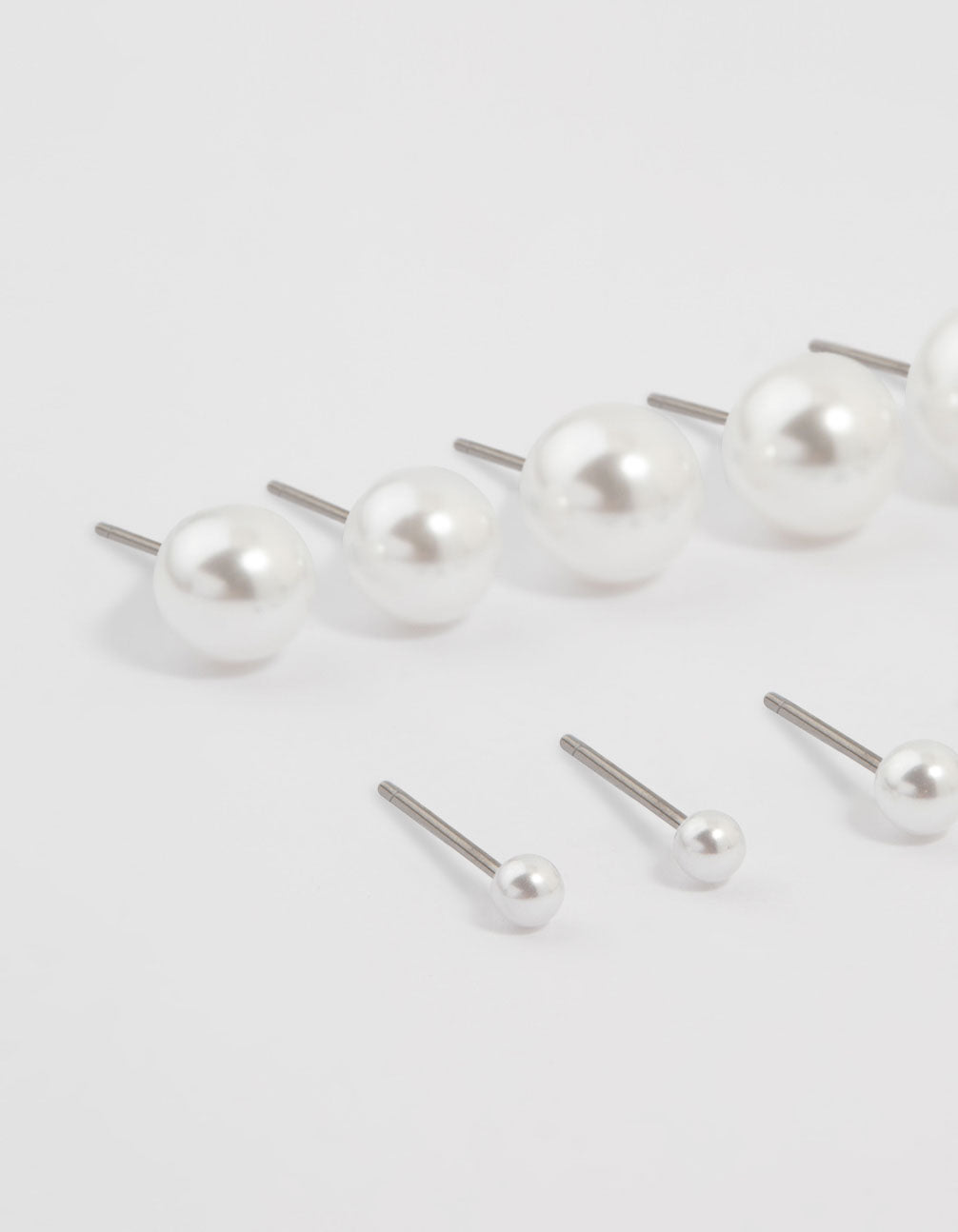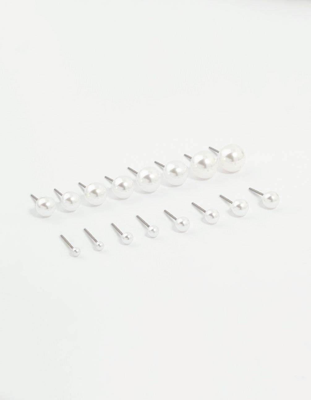 Elevate your style with this pearl stud pack! This set features eight pairs of different-sized pearl studs for a touch of elegance to any outfit.