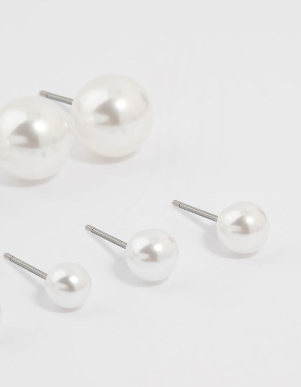Silver Pearl Stud Earrings 8-Pack