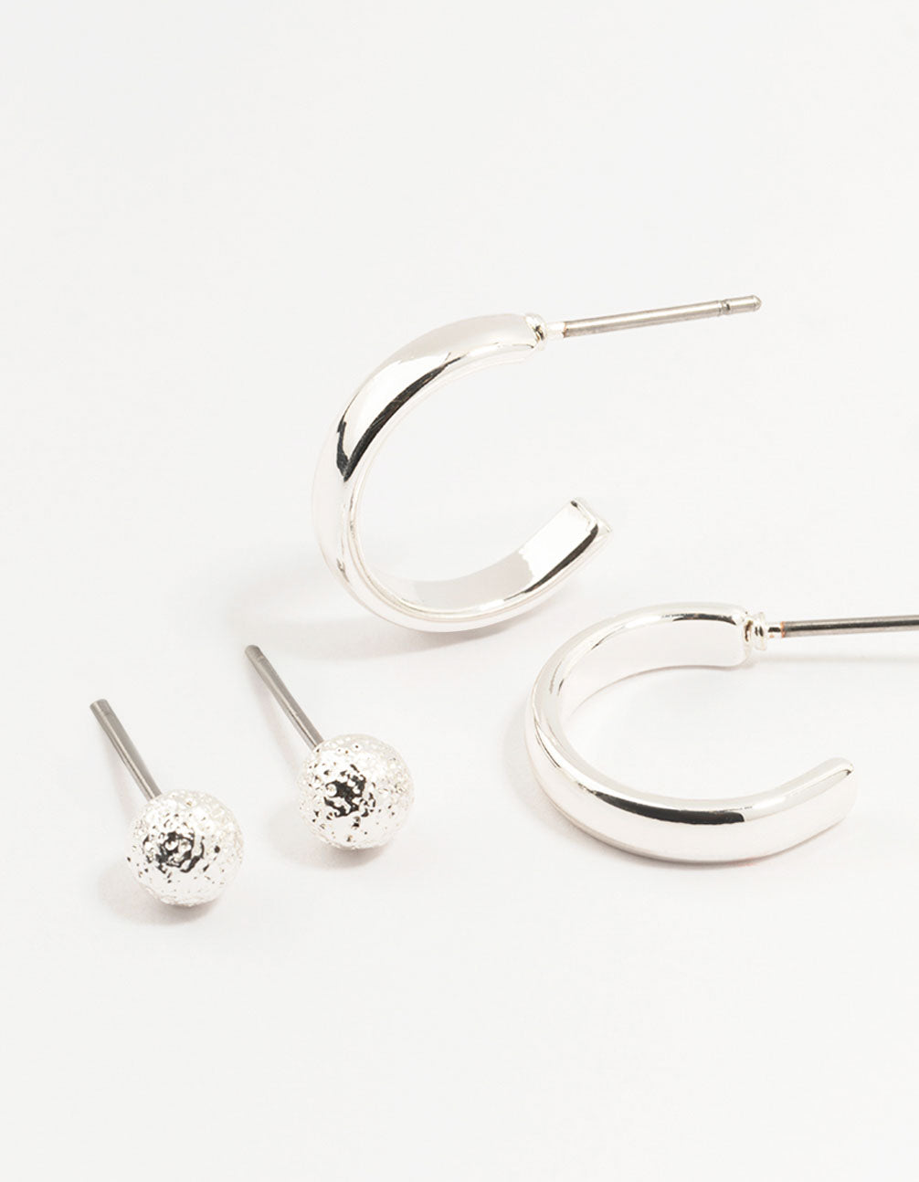 Silver Pearl Stud & Hoop Earrings 3-Pack