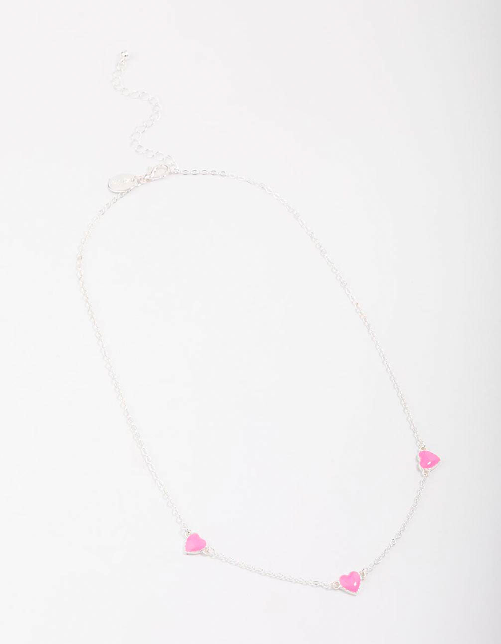 Add a lovable touch to your look with this signature, silver necklace. This unique chain necklace is adorned with mini, pink-coloured hearts — perfect for adding a subtle pop of colour to your outfit.