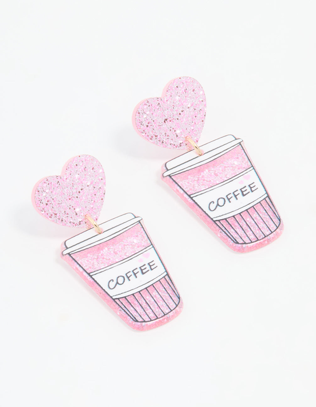 Espresso yourself with these fun silver-toned drop earrings! Featuring a pink heart coffee design, they're perfect for coffee lovers.