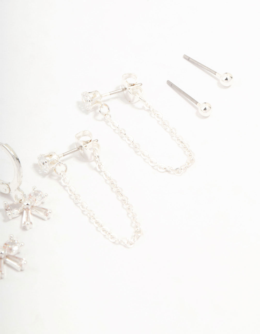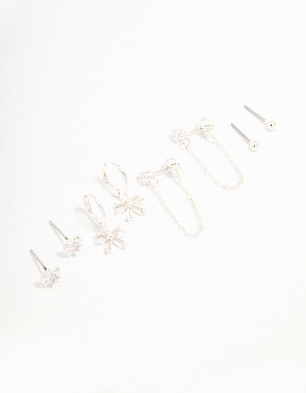 Silver Plated Bow Cubic Zirconia Chain & Stud Earrings 4-Pack