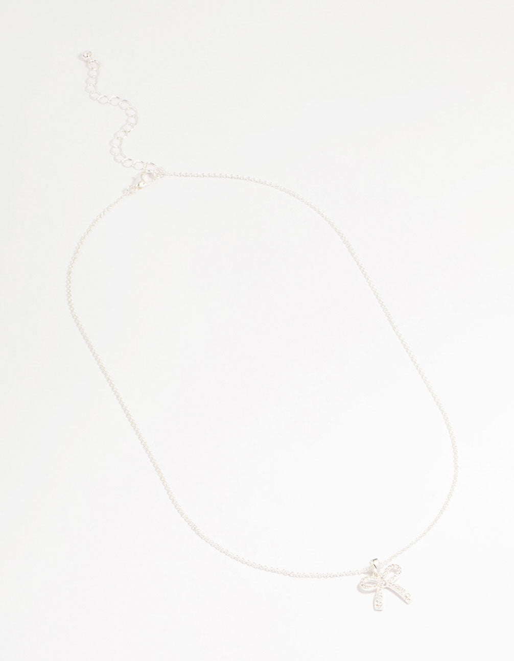 Silver Plated Brass Cubic Zirconia Pavé Bow Pendant Necklace
