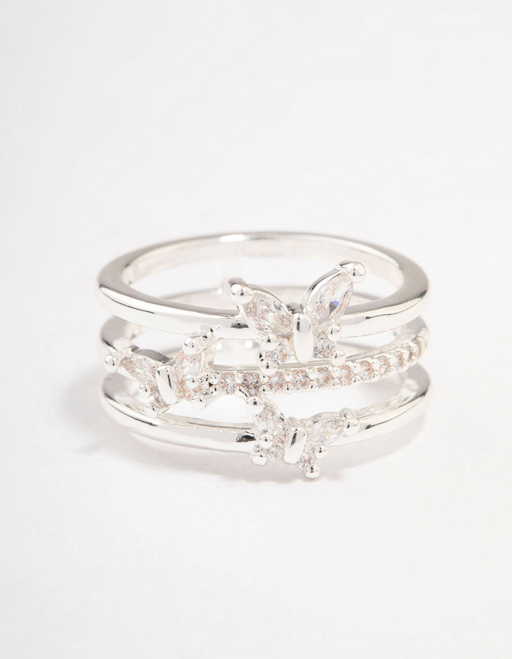 This wide cocktail ring is plated with real silver and features a butterfly-inspired design for an ethereal touch.