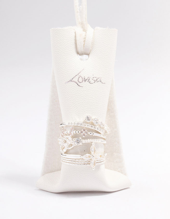 Curate your stack with this genuine silver ring stack. This pack of silver plated rings contains five individual stacking rings, encrusted with cubic zirconia crystals for a touch of sparkle.