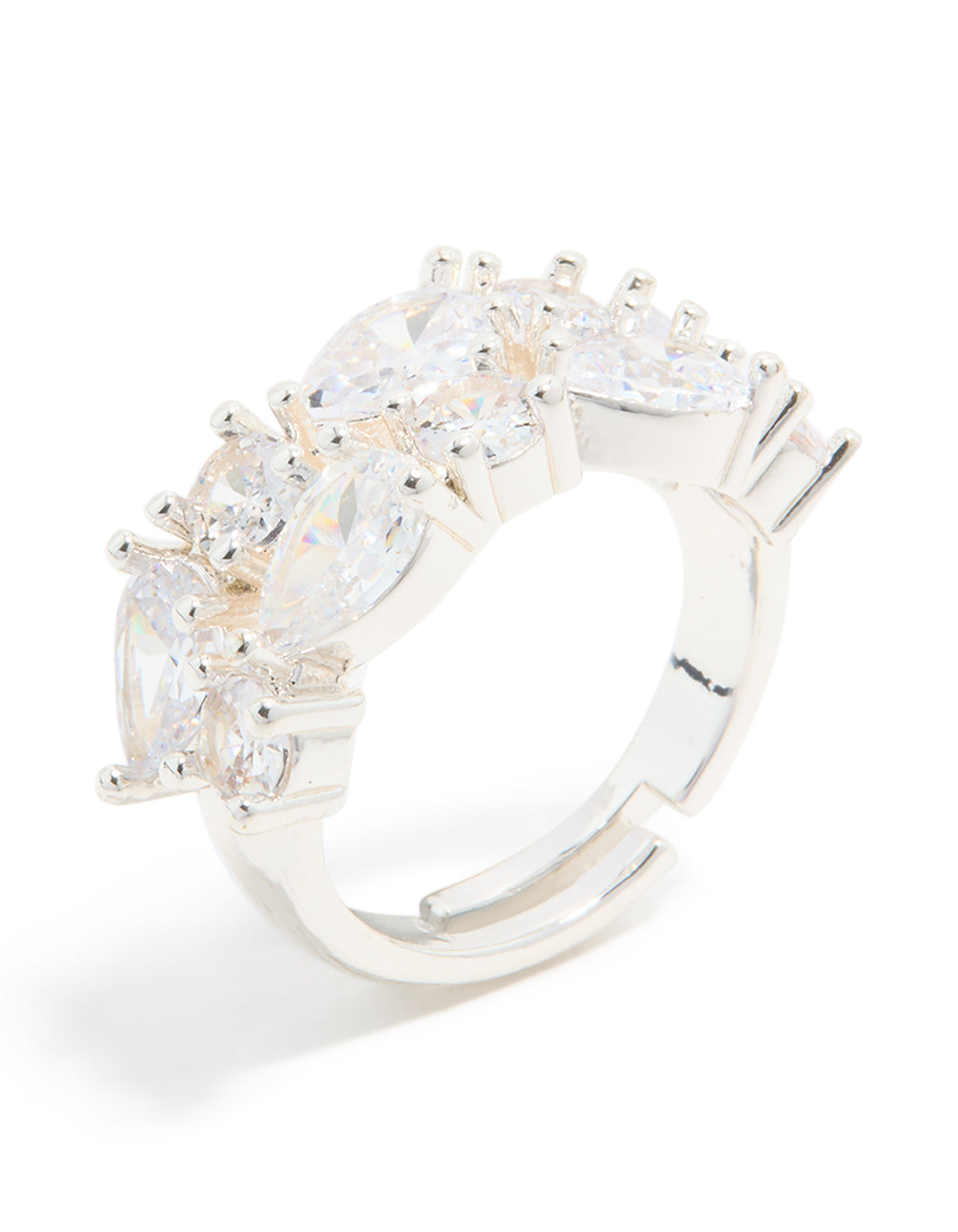 Silver Plated Cubic Zirconia Multi-Shaped Layered Ring