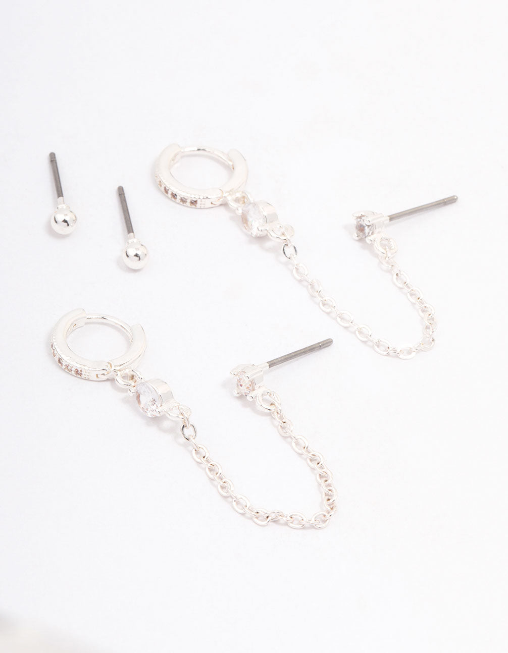 Silver Plated Cubic Zirconia Pave Huggie Chain Earring Pack