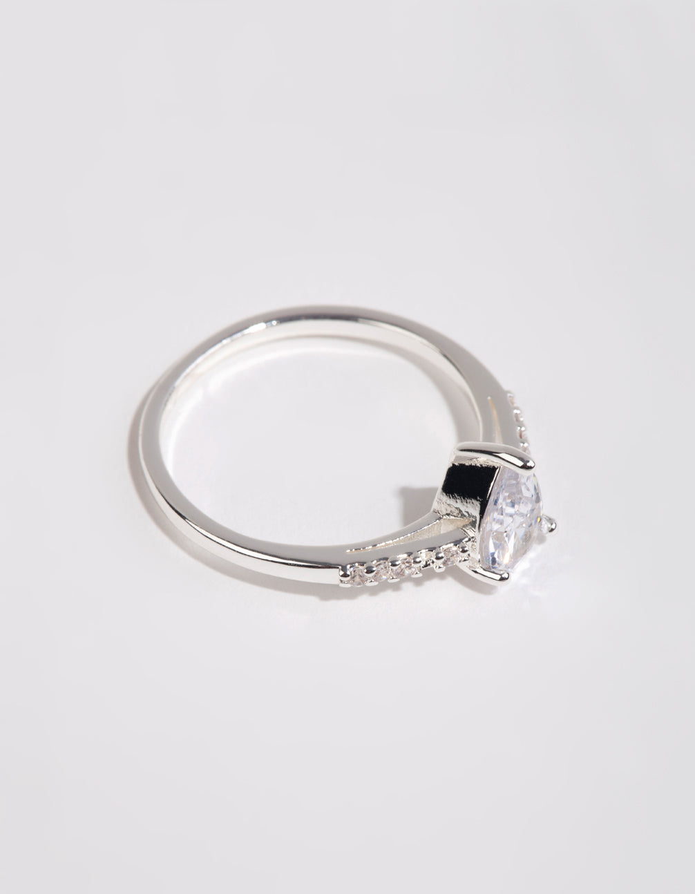 Sparkle with all the facets of a true diamond with cubic zirconia. These lab-created crystals are engineered to be indistinguishable from diamonds to the naked eye. This beautiful silver-toned ring features a pear-cut cubic zirconia.