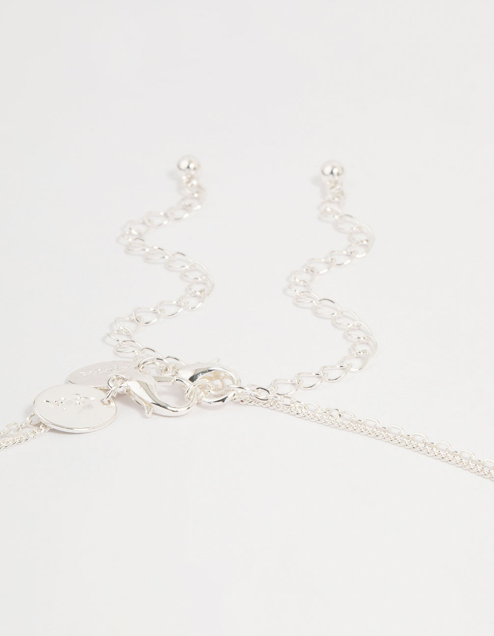 Silver Plated Cubic Zirconia & Plain Cross Layered Necklace