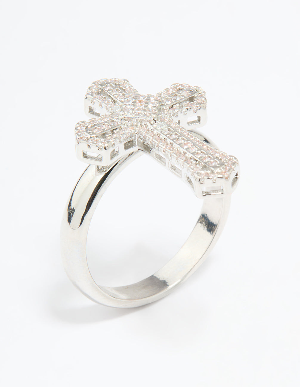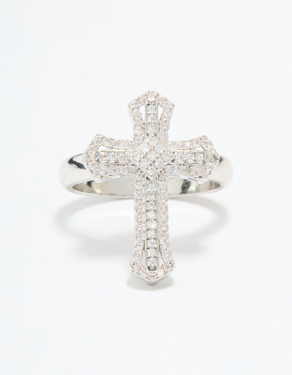 Silver Plated Cubic Zirconia Statement Cross Ring
