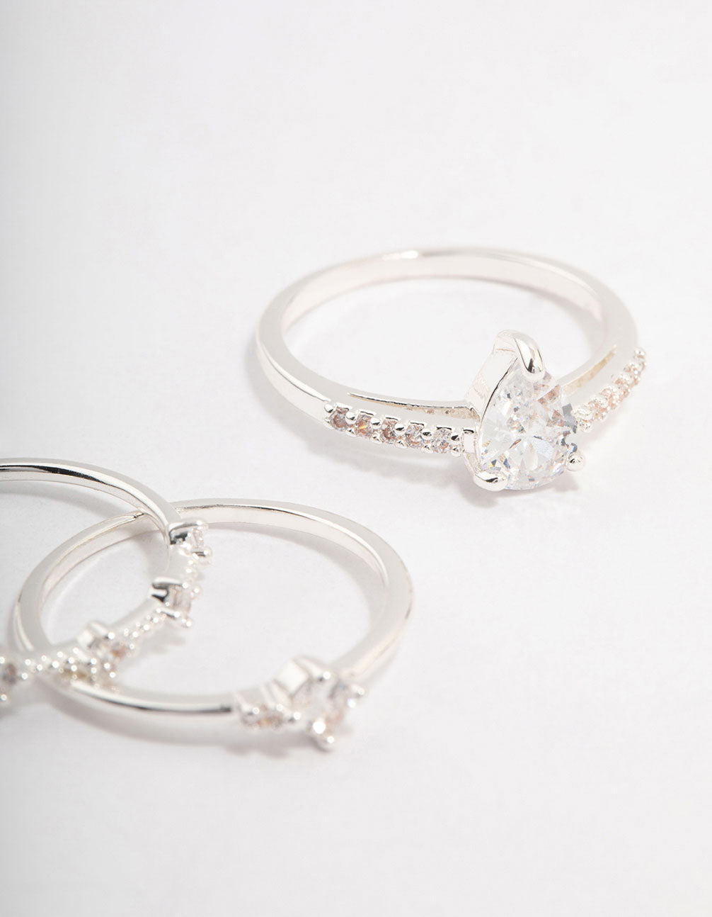 These timeless stacking rings are plated with real silver and feature an assortment of crystal embellishments for a glamorous touch.