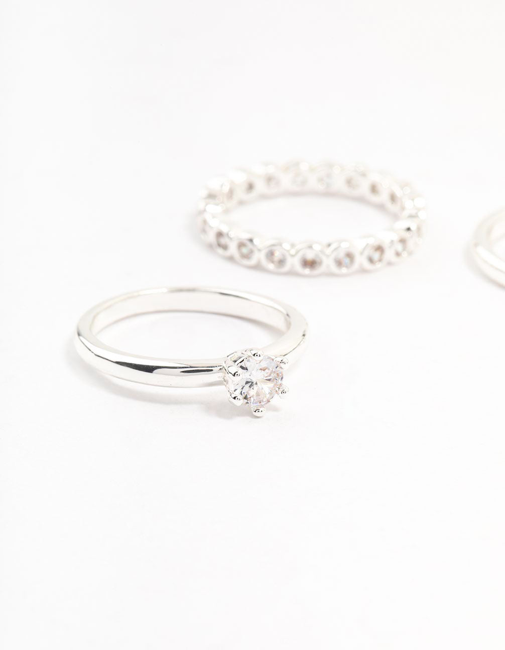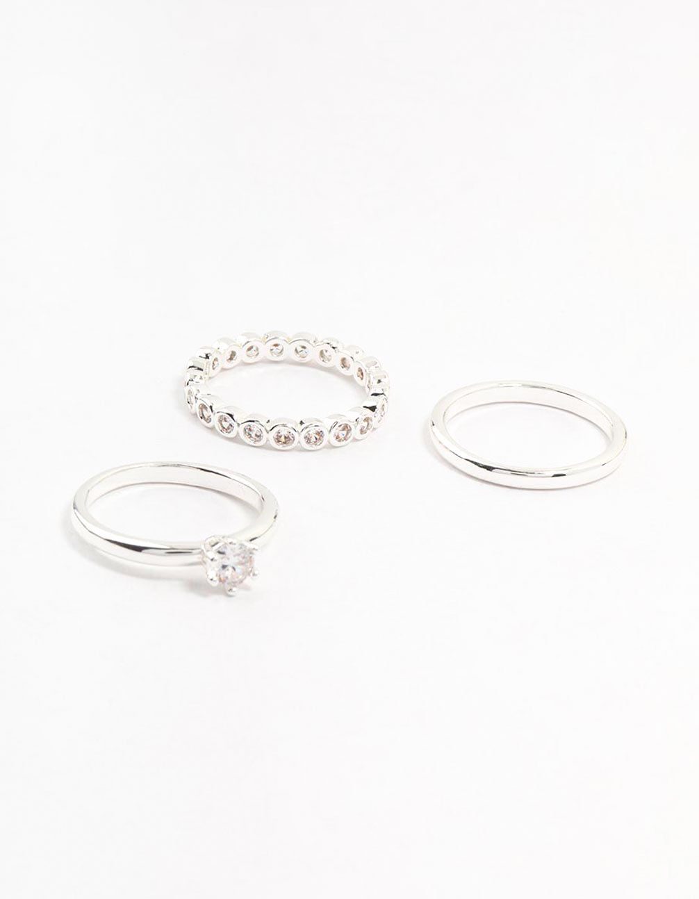 Silver Plated Fine Round Cubic Zirconia Stacking Rings 3-Pack