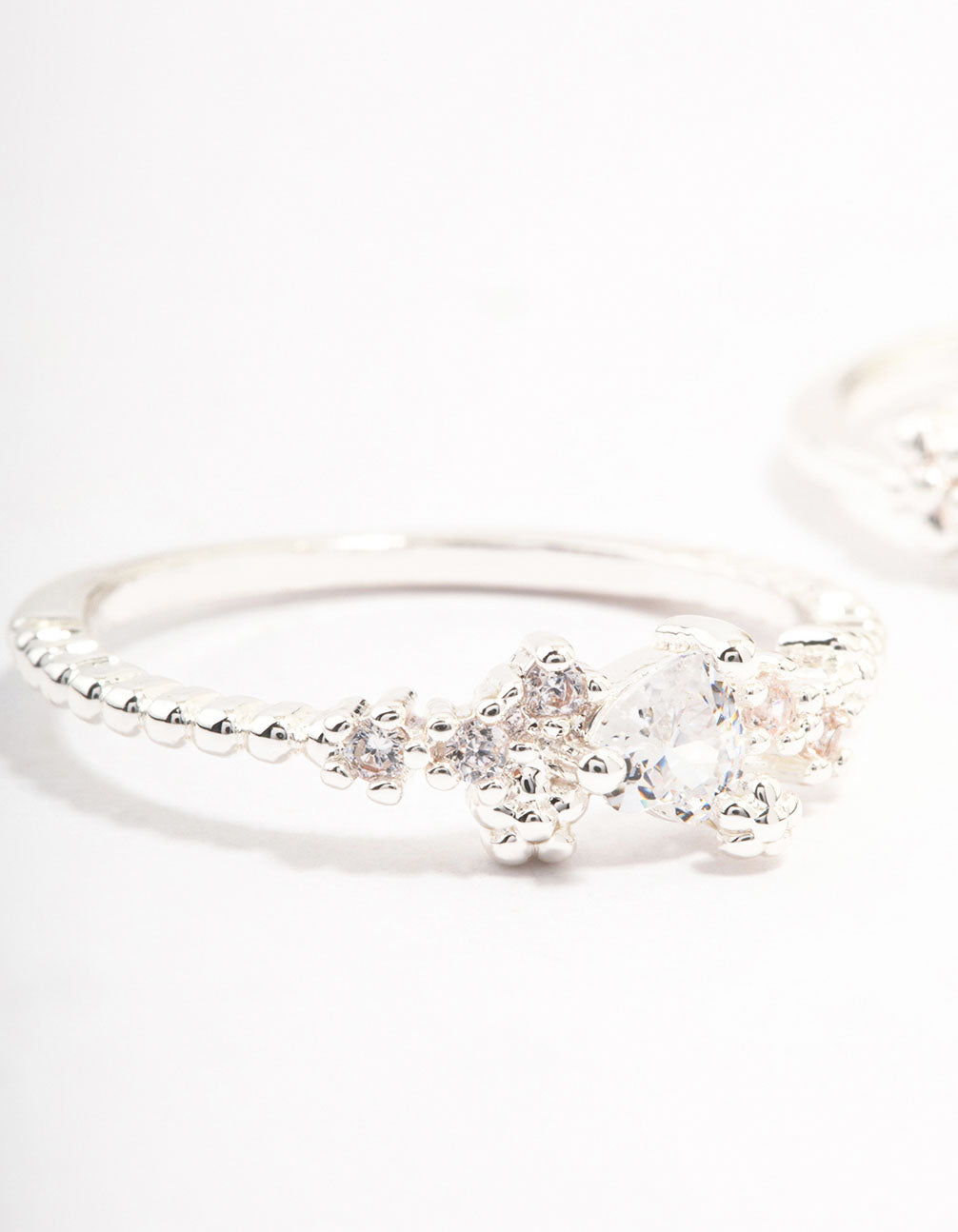 These timeless stacking rings are plated with real silver and feature an assortment of foral-shaped crystals for a touch of glamour.