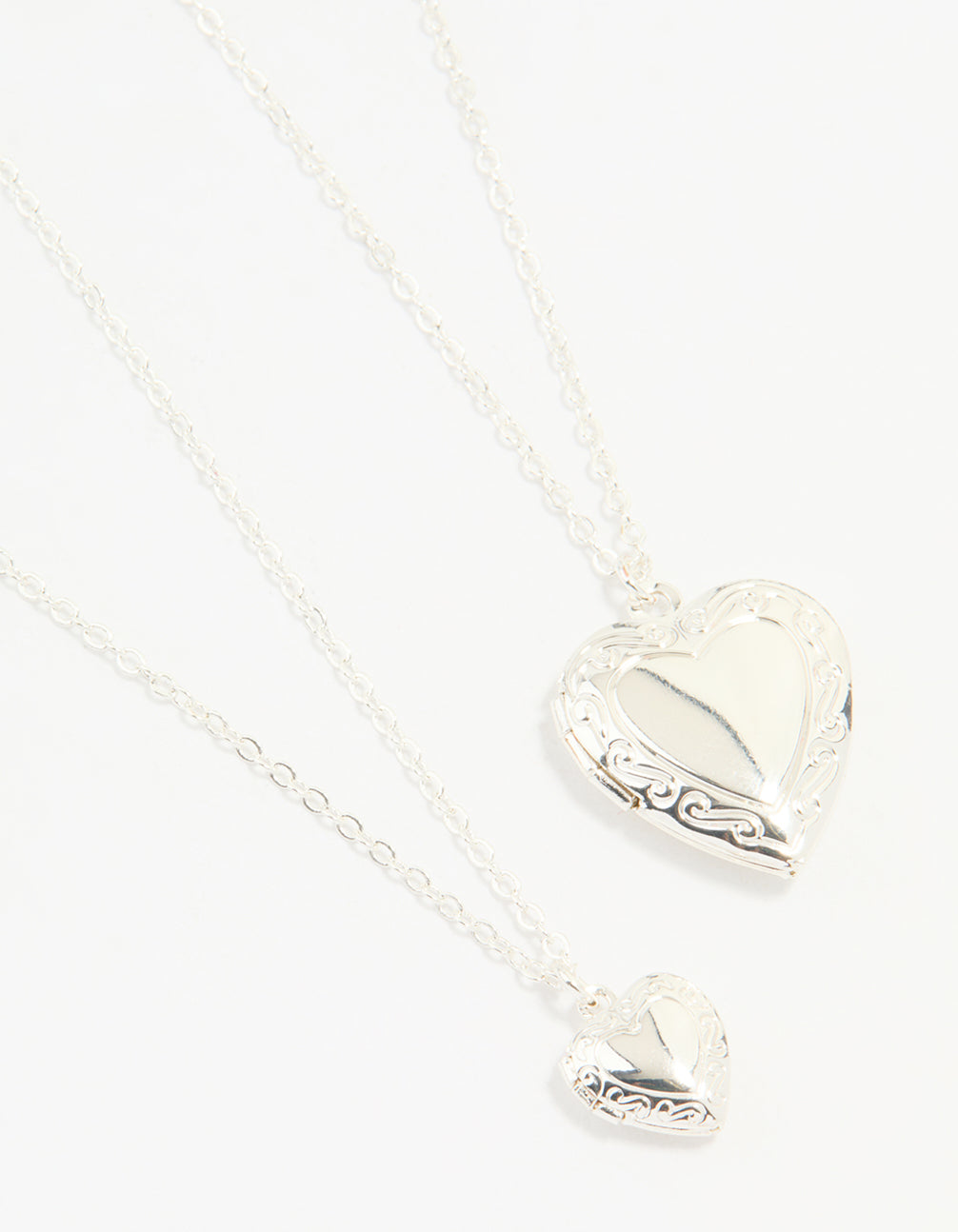 Silver Plated Heart Pendant Necklaces 2-Pack