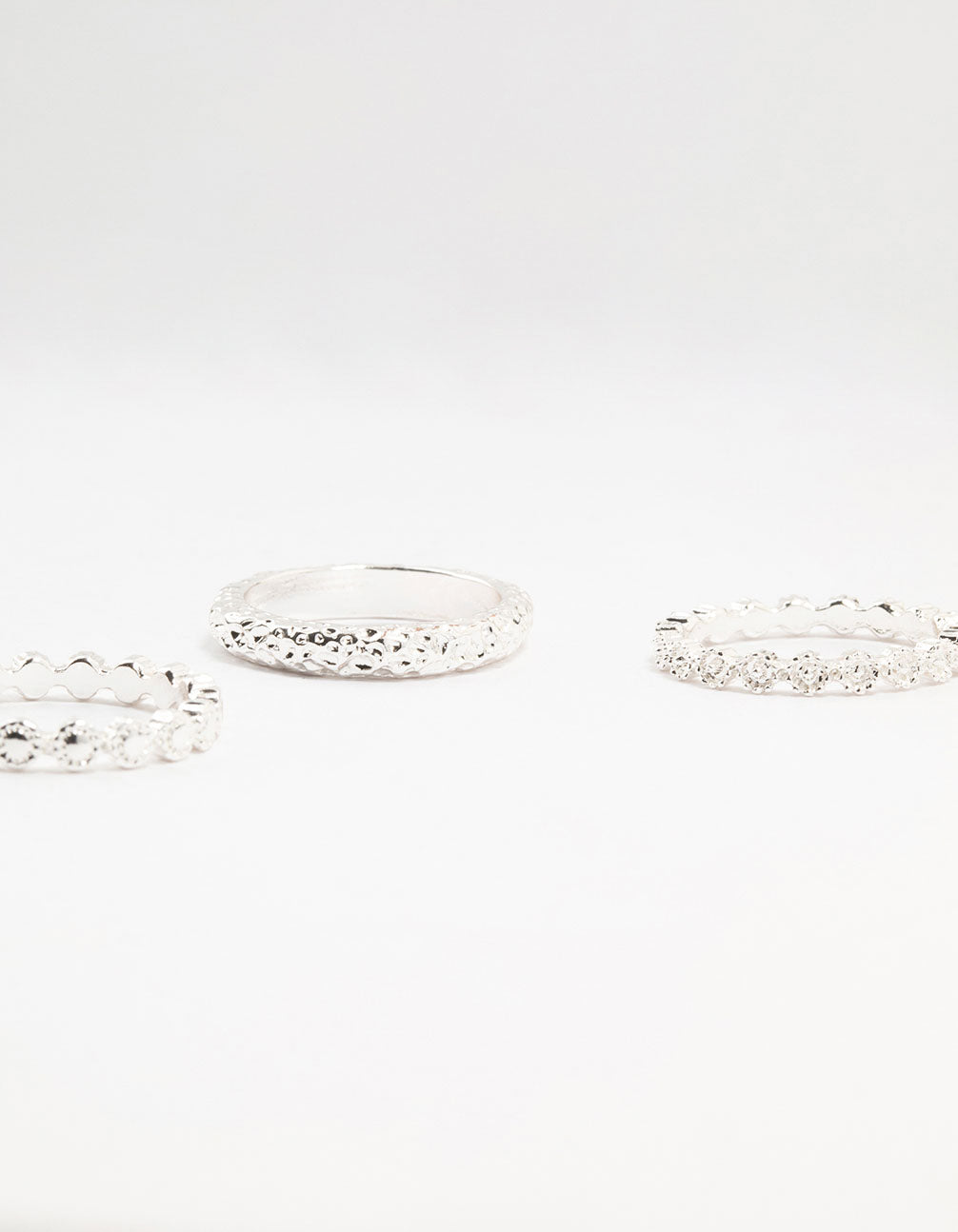 Stay on trend with this 5-pack of silver-plated molten rings! Perfect for stacking, mix and match to craft your own style, from minimalist to bold. Elevate your everyday look with these textured beauties.
