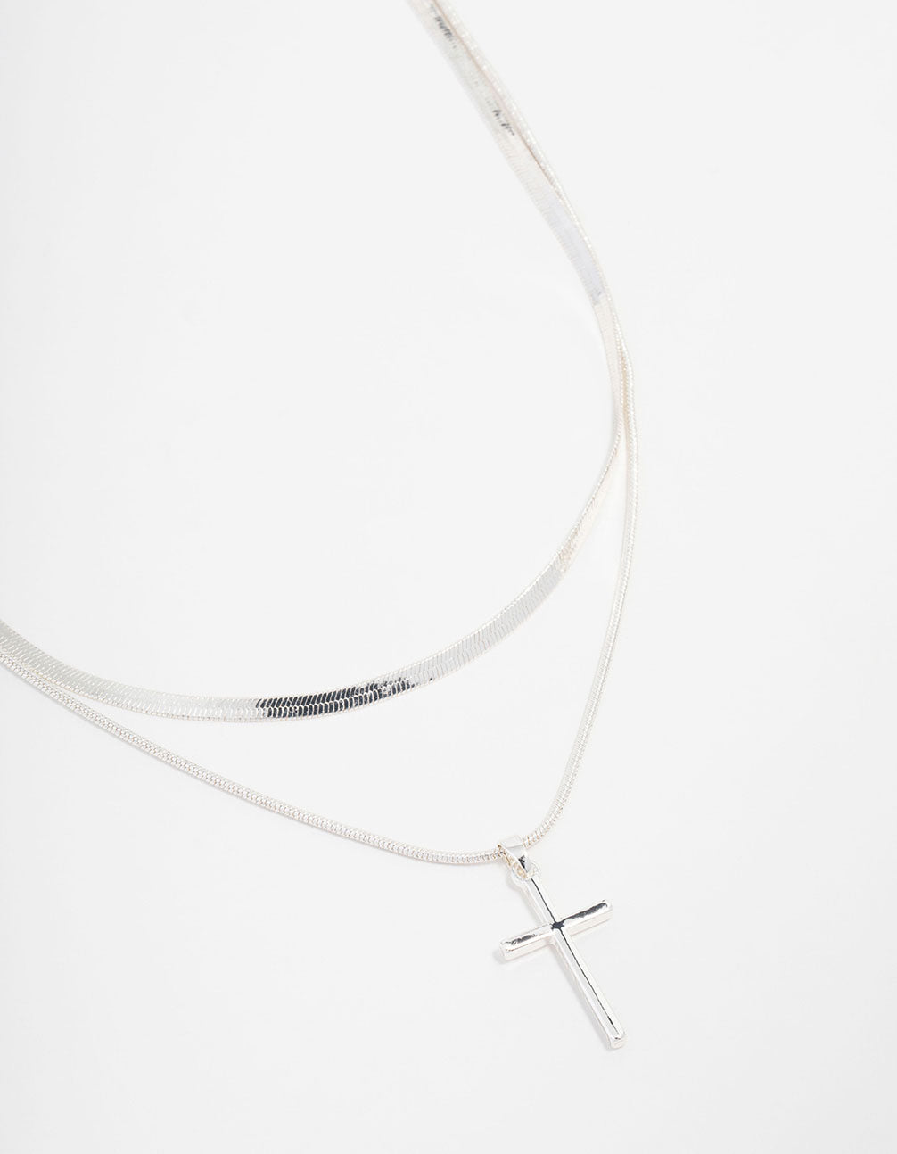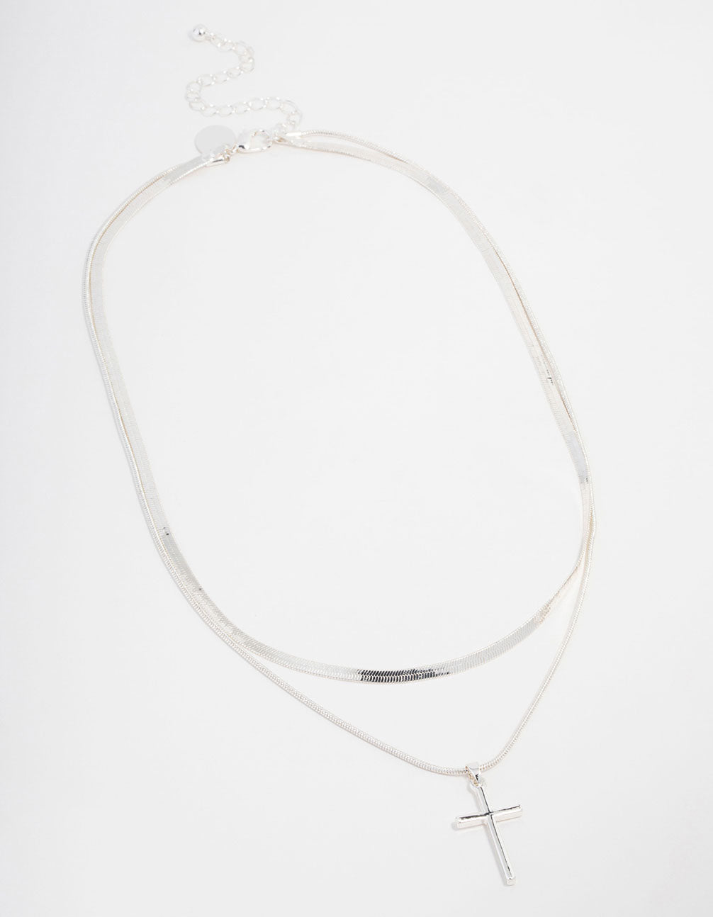 Silver Plated Plain Cross Snake Necklace 2-Pack