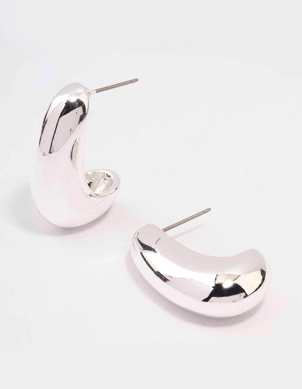 This set of silver-plated hoop earrings features a small, bold design for a modern and minimalist look.