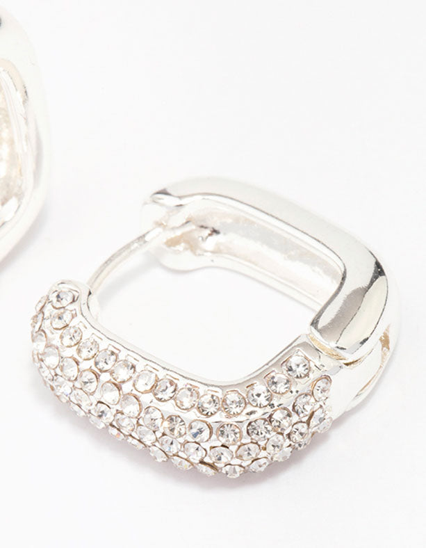 Meet your new pair of everyday hoops! These hoop earrings are plated with real silver and feature a square-shaped silhouette, encrusted with mini diamantes for a glamorous touch.