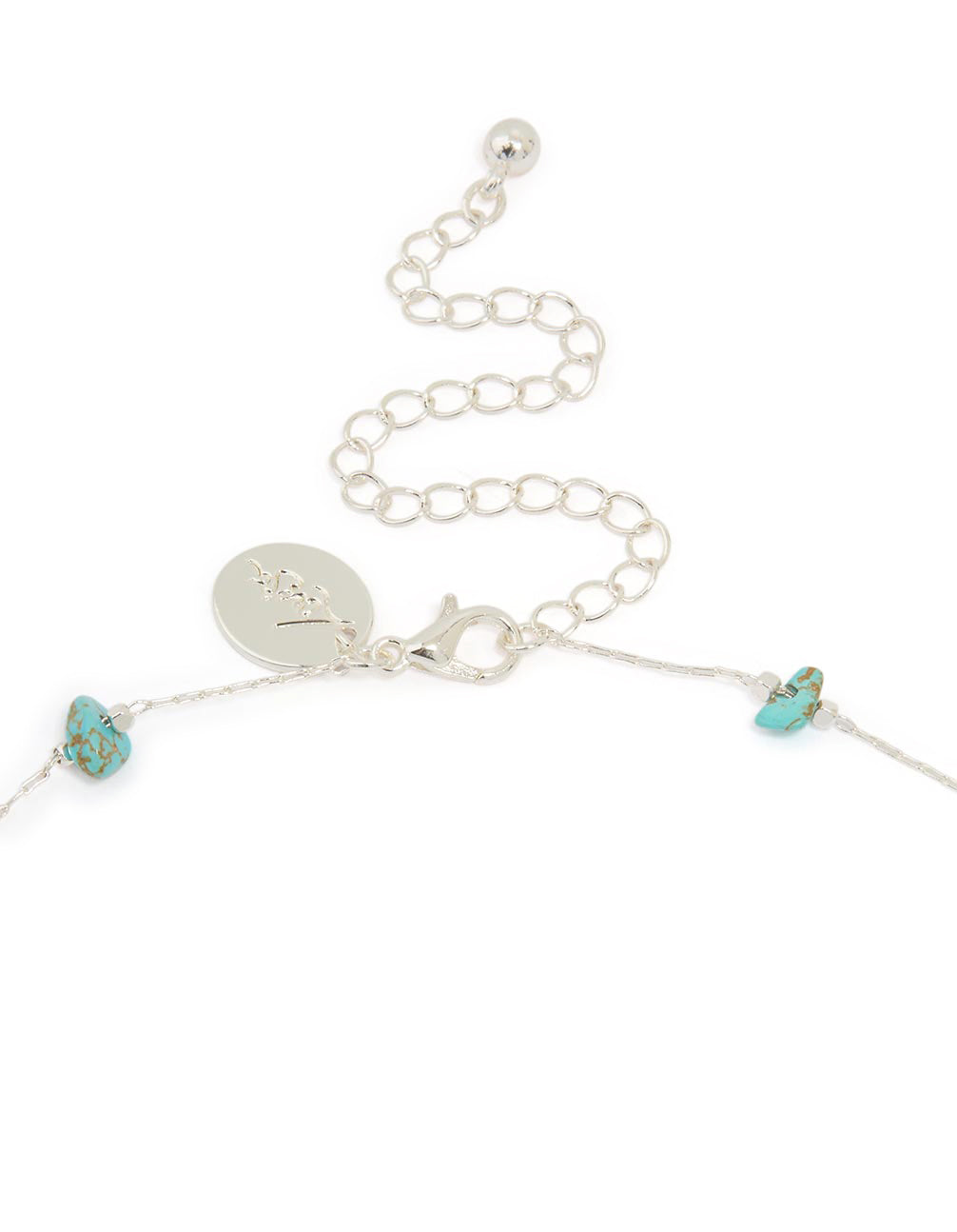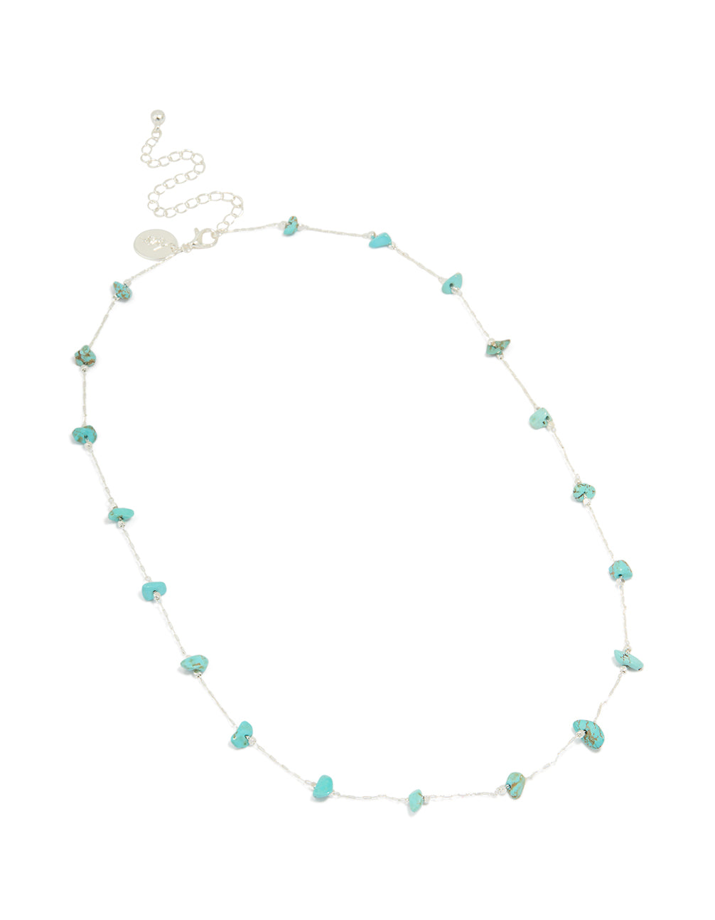 Add a splash of vibrant charm to your look with this Silver Plated Turquoise Semi Precious Stone Station Necklace. Featuring a delicate silver-plated chain dotted with striking turquoise semi-precious stones, this necklace is a perfect blend of timeless elegance and boho flair. Ideal for layering or wearing solo, it's a versatile jewellery piece that can elevate anything from casual denim-and-tee combos to flowy dresses. Whether you're dressing for a summer festival, a chilled brunch, or even a laid-back office vibe, this necklace is your go-to accessory. A must-have for lovers of silver jewellery, turquoise gemstones, and station necklaces with a modern edge!