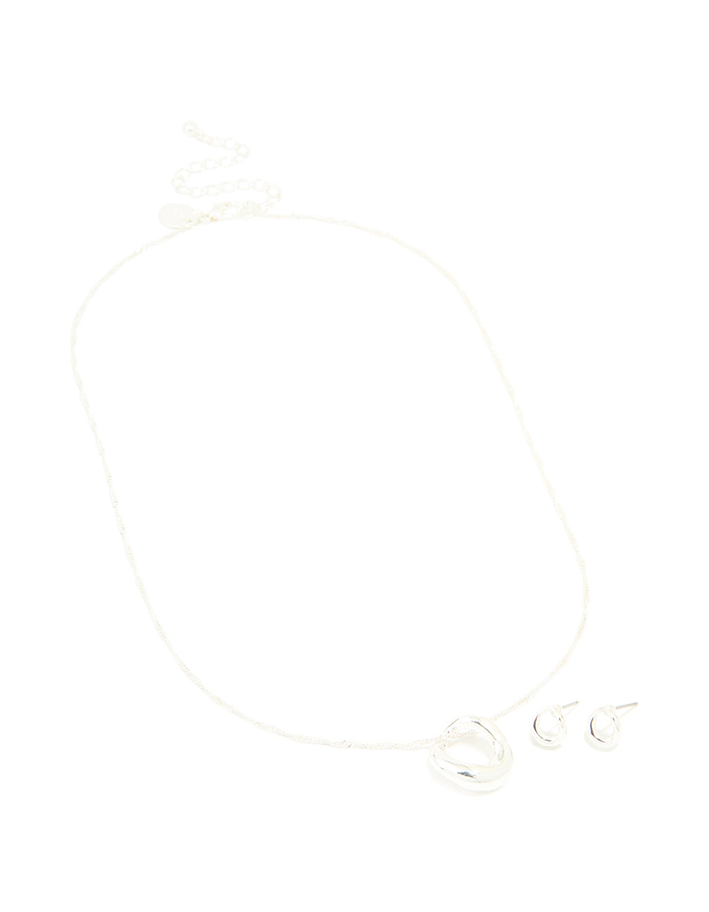 Silver Plated Twisted Circle Pendant Necklace & Earrings Set Silver Plated Twisted Circle Pendant Necklace & Earrings Set Silver Plated Twisted Circle Pendant Necklace & Earrings Set