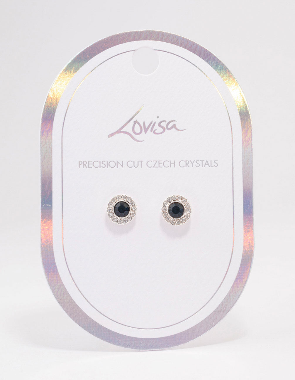 This set of simple stud earrings feature round, sapphire-coloured czech crystals for a touch of sparkle.