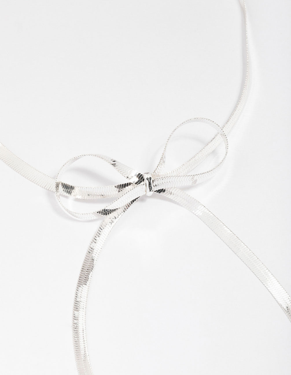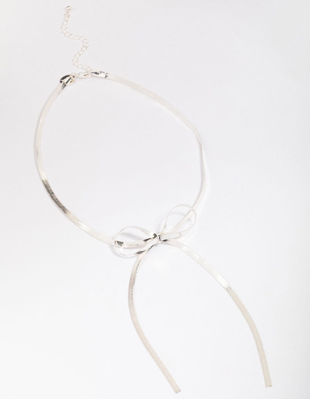 Silver Snake Chain Bow Necklace Silver Snake Chain Bow Necklace Silver Snake Chain Bow Necklace