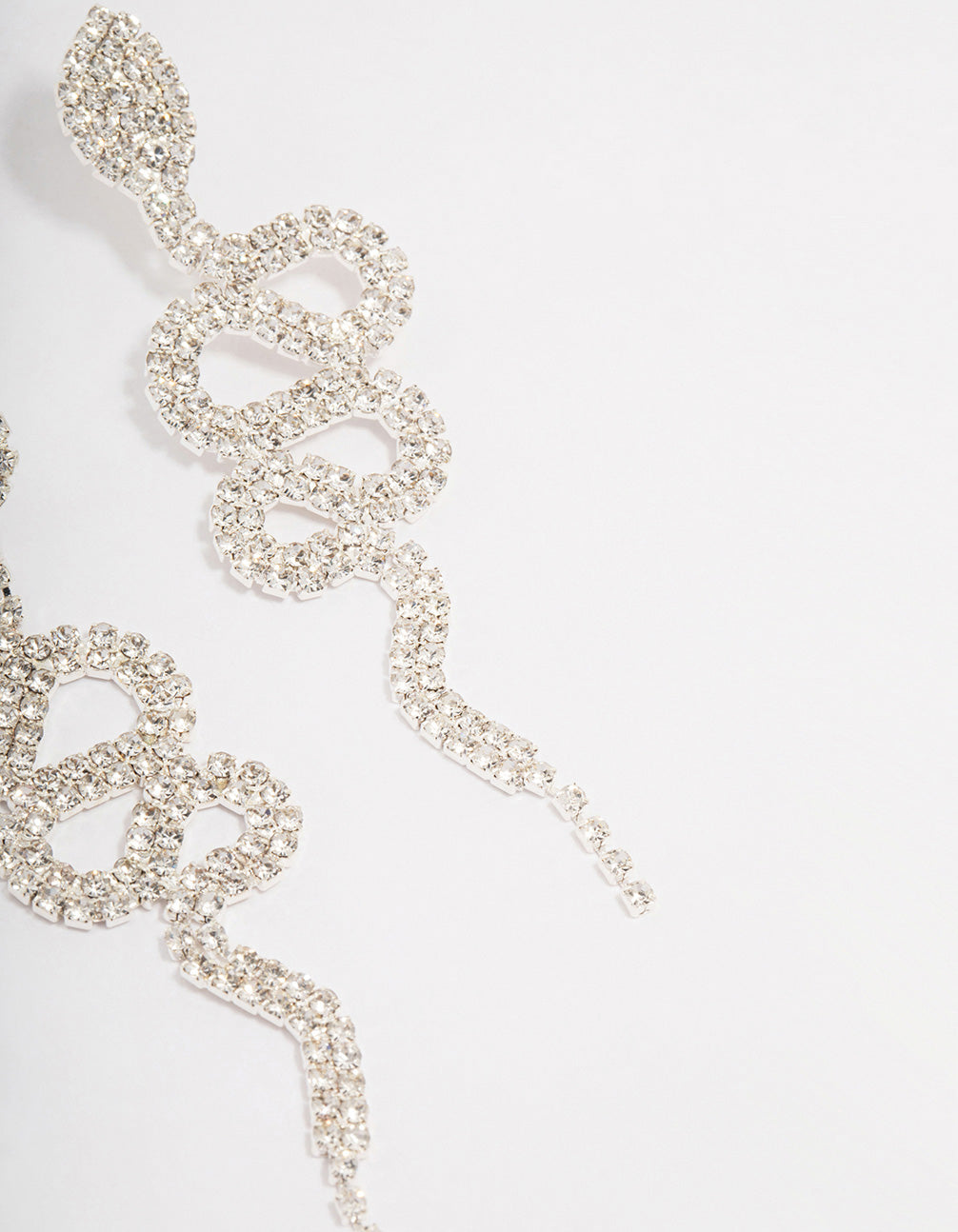 Enter your Reputation Era with our selection of stunning snake earrings. These lovely statement earrings feature a swirling snake design, encrusted with eye-catching diamantes for a touch of sparkle.