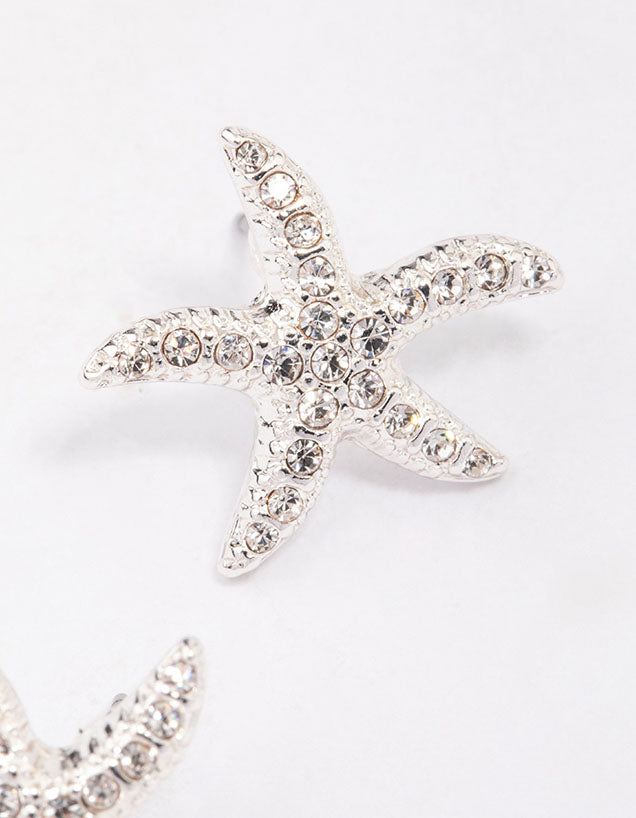 Silver Diamante Starfish Stud Earrings