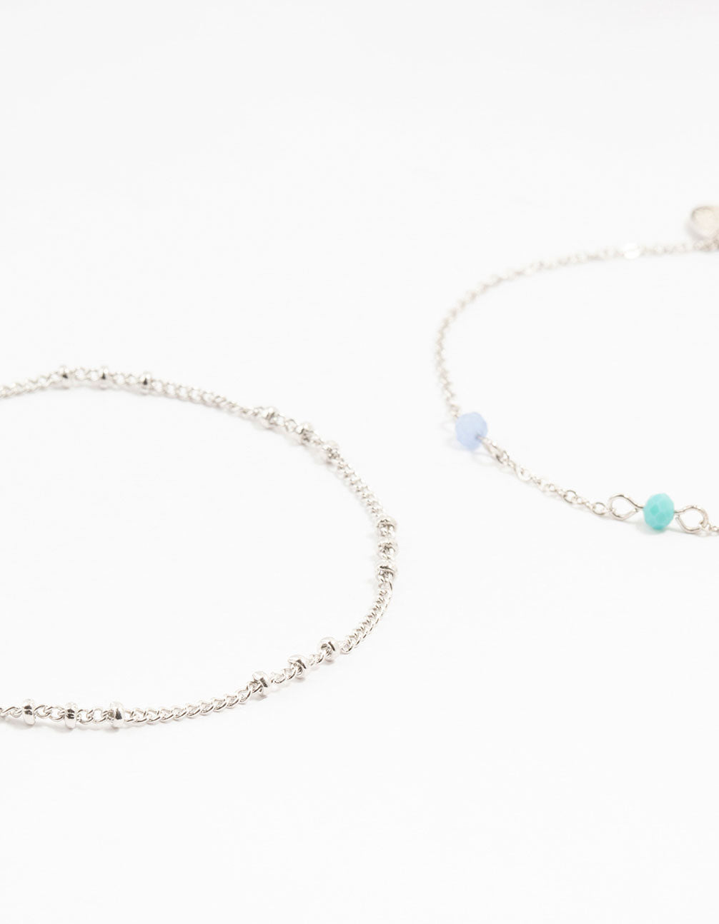 Two is always better for anklets. This set includes a dainty silver chain and a vibrant blue & purple chain, ideal for stacking and adding a playful touch to your summer style. Create effortlessly cool looks with these trendy anklets.