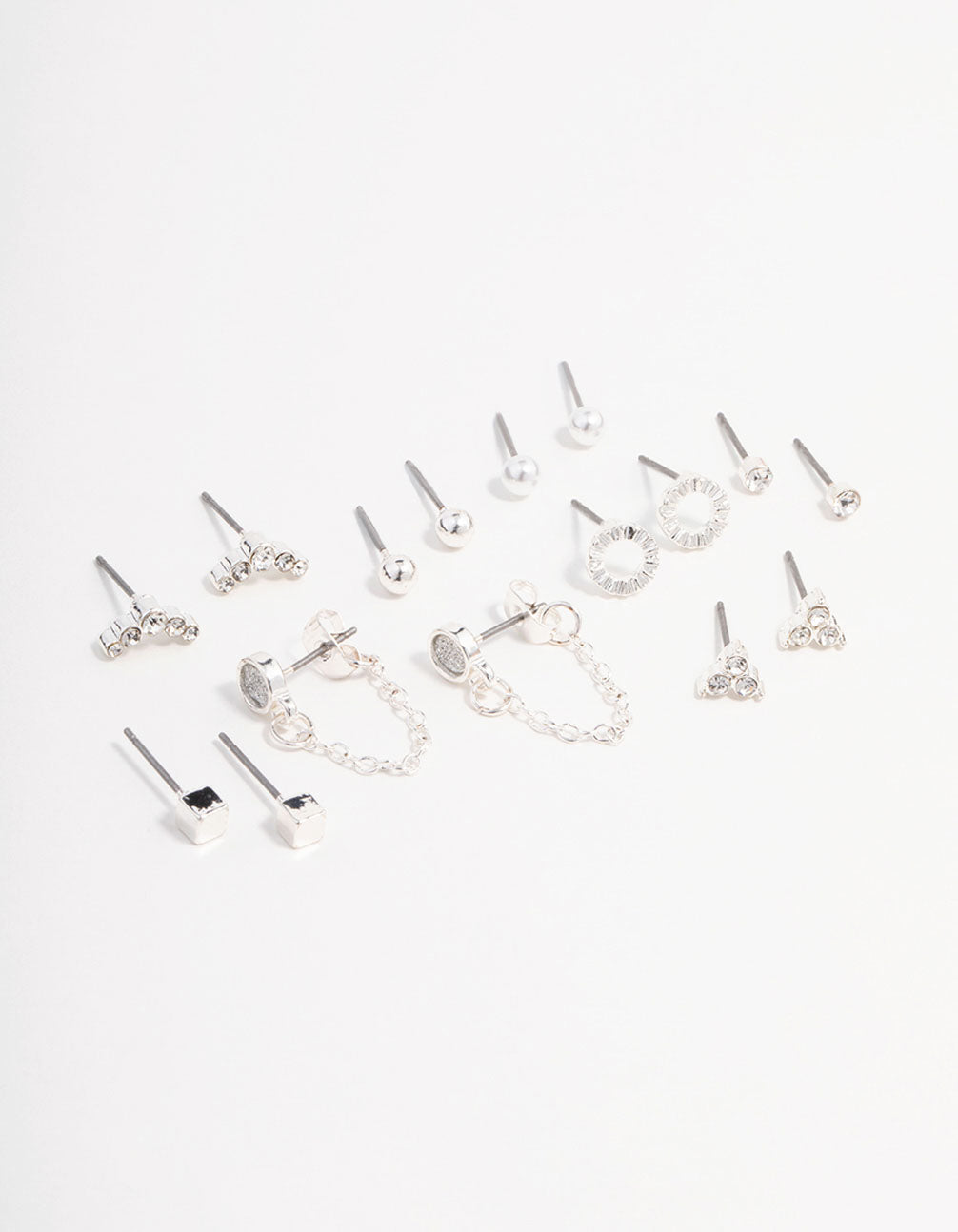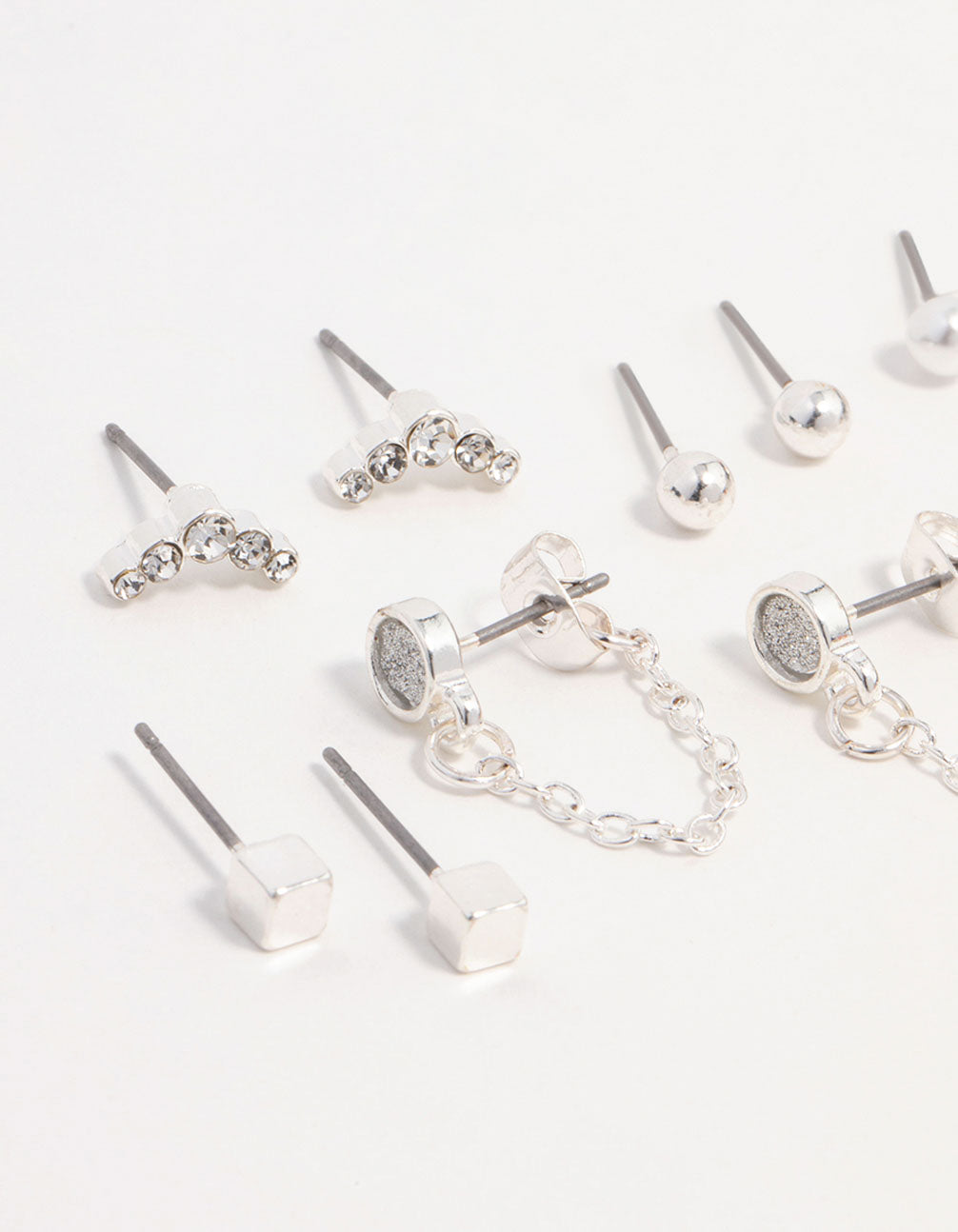 Silver Stud Chain Diamante Earring 8-Pack Silver Stud Chain Diamante Earring 8-Pack Silver Stud Chain Diamante Earring 8-Pack