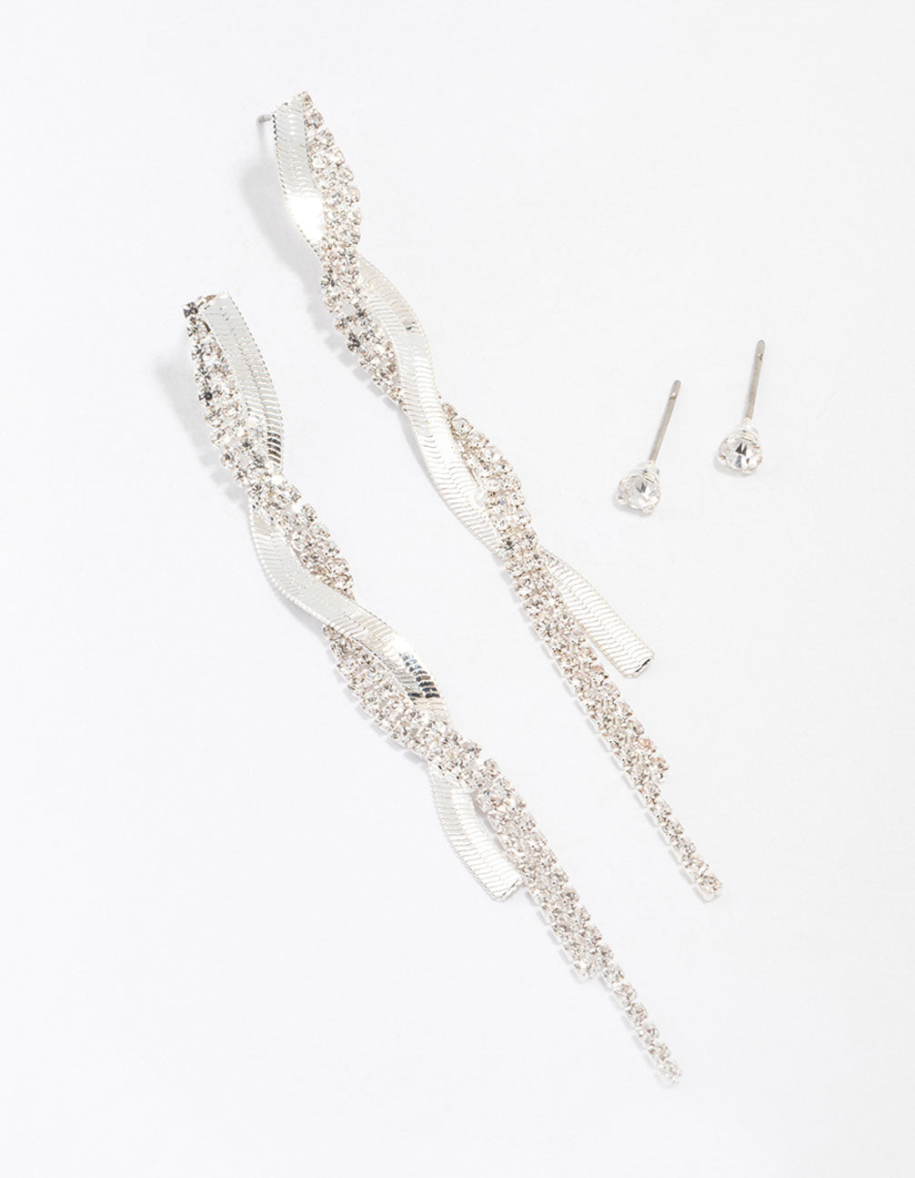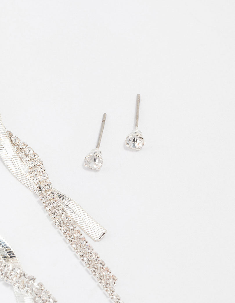 Silver Studs & Drop Cup Chain Earrings Multipack