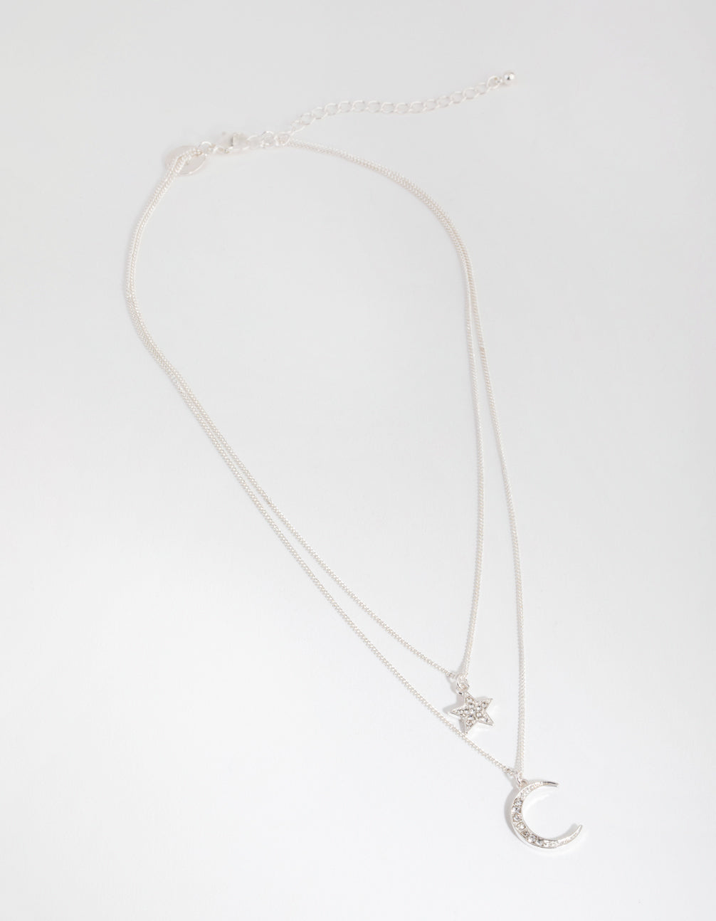 Silver Diamante Moon & Star Necklace Silver Diamante Moon & Star Necklace Silver Diamante Moon & Star Necklace