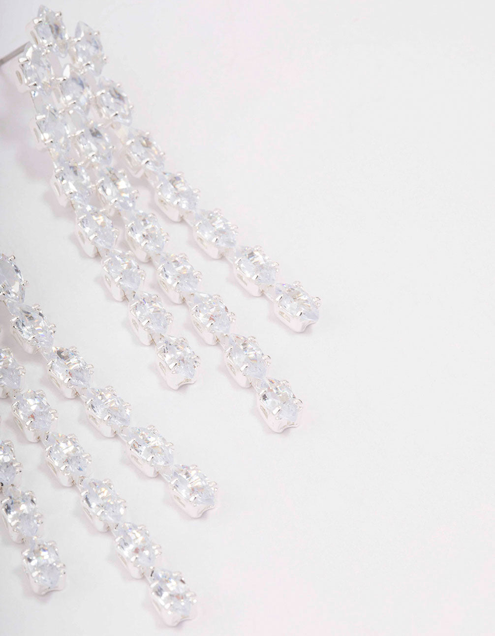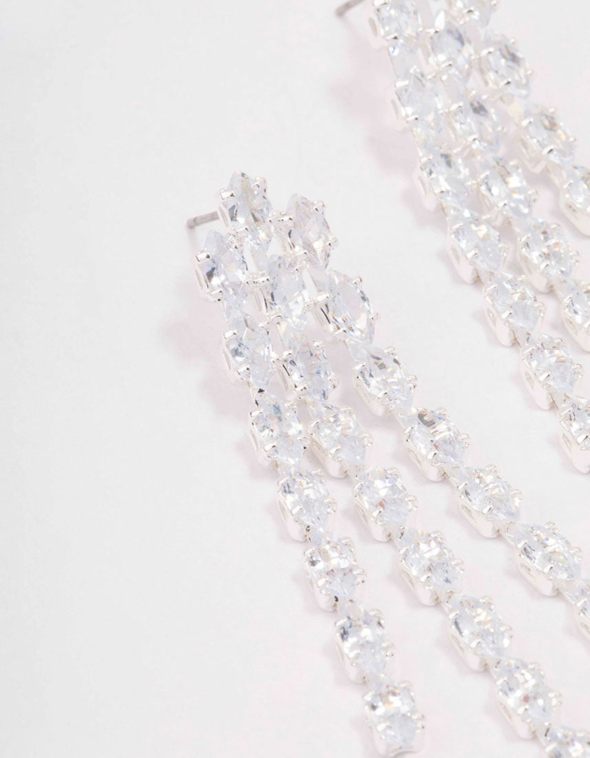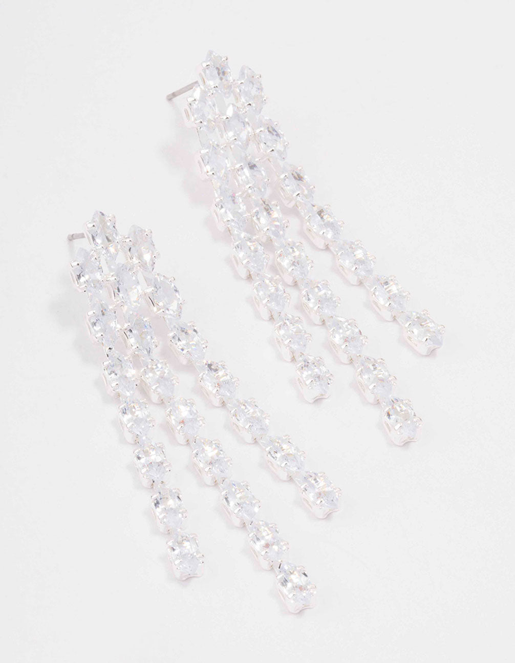 Silver Triple Layer Cubic Zirconia Cup Chain Drop Earrings Silver Triple Layer Cubic Zirconia Cup Chain Drop Earrings Silver Triple Layer Cubic Zirconia Cup Chain Drop Earrings