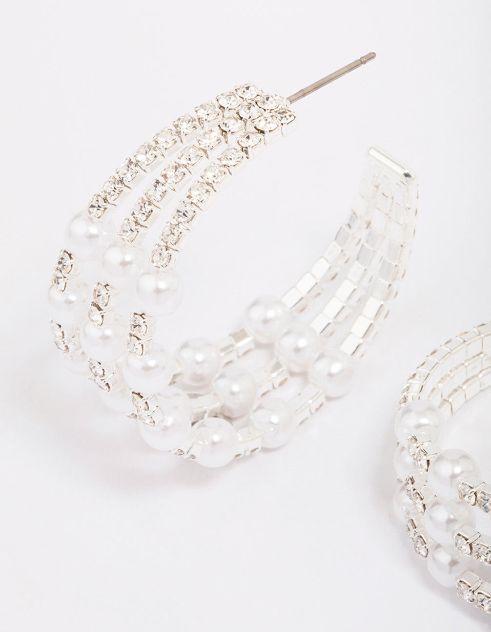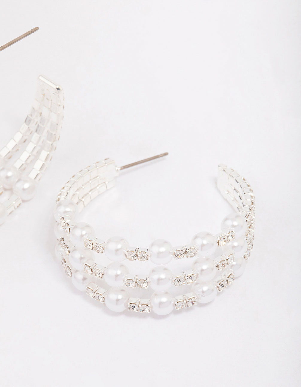These silver triple row hoop earrings feature three graduated circular bands that provide a stylish stacked look. Perfect for occasion-wear, these lightweight hoops are ideal for those looking to add a touch of shine and glamour to any outfit.
