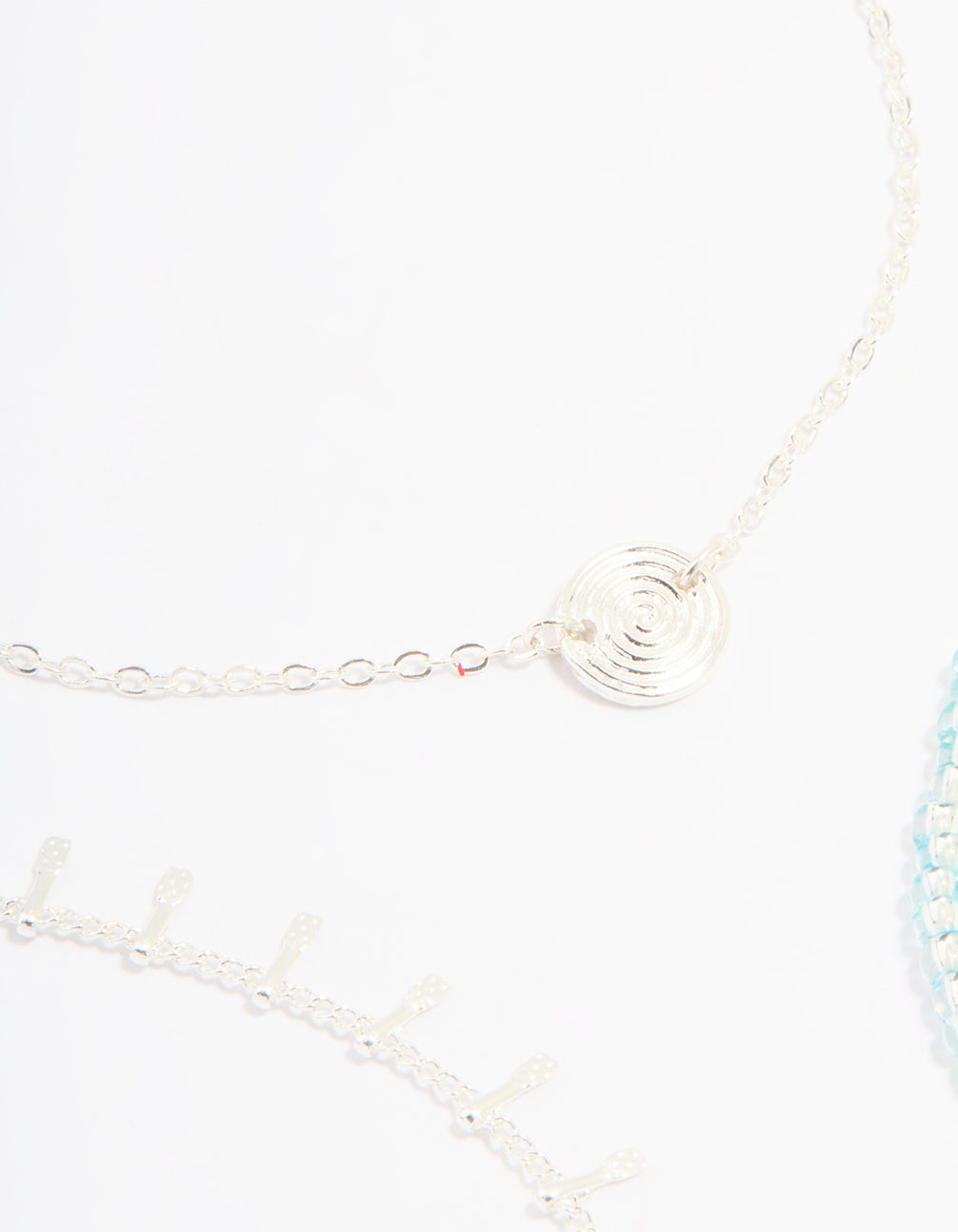 • Silver Turquoise Beaded & Spiral Circle Anklets 3-Pack - link has visual effect only