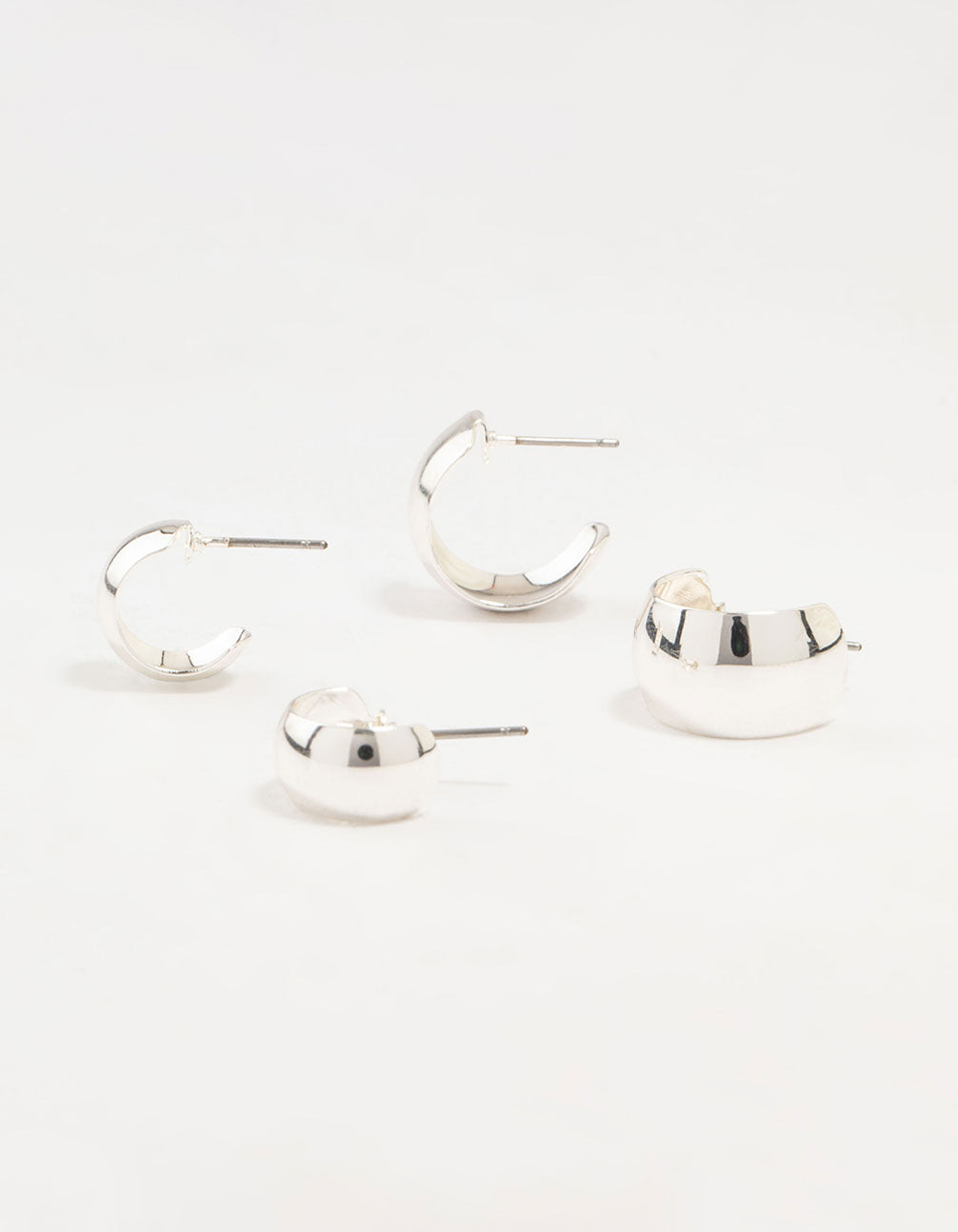 Upgrade your style with these silver-toned huggie earrings! This set features two pairs, perfect for effortlessly enhancing your look.