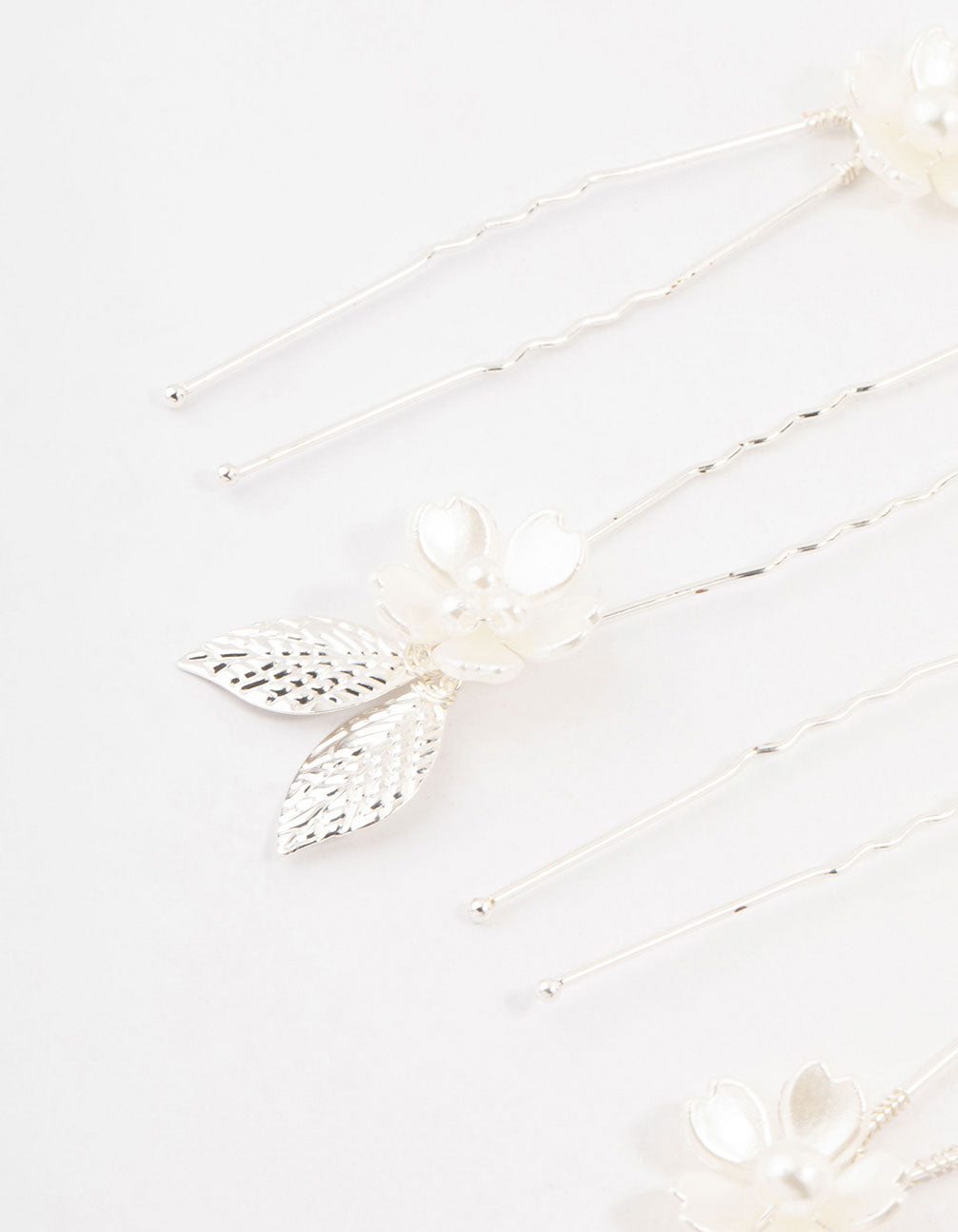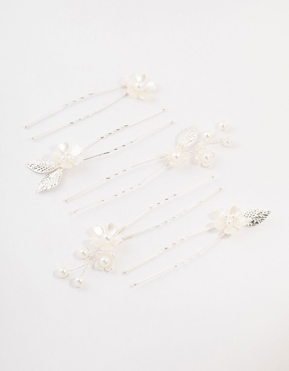 Silver Wire Flower & Pearl Bridal Hair Pins