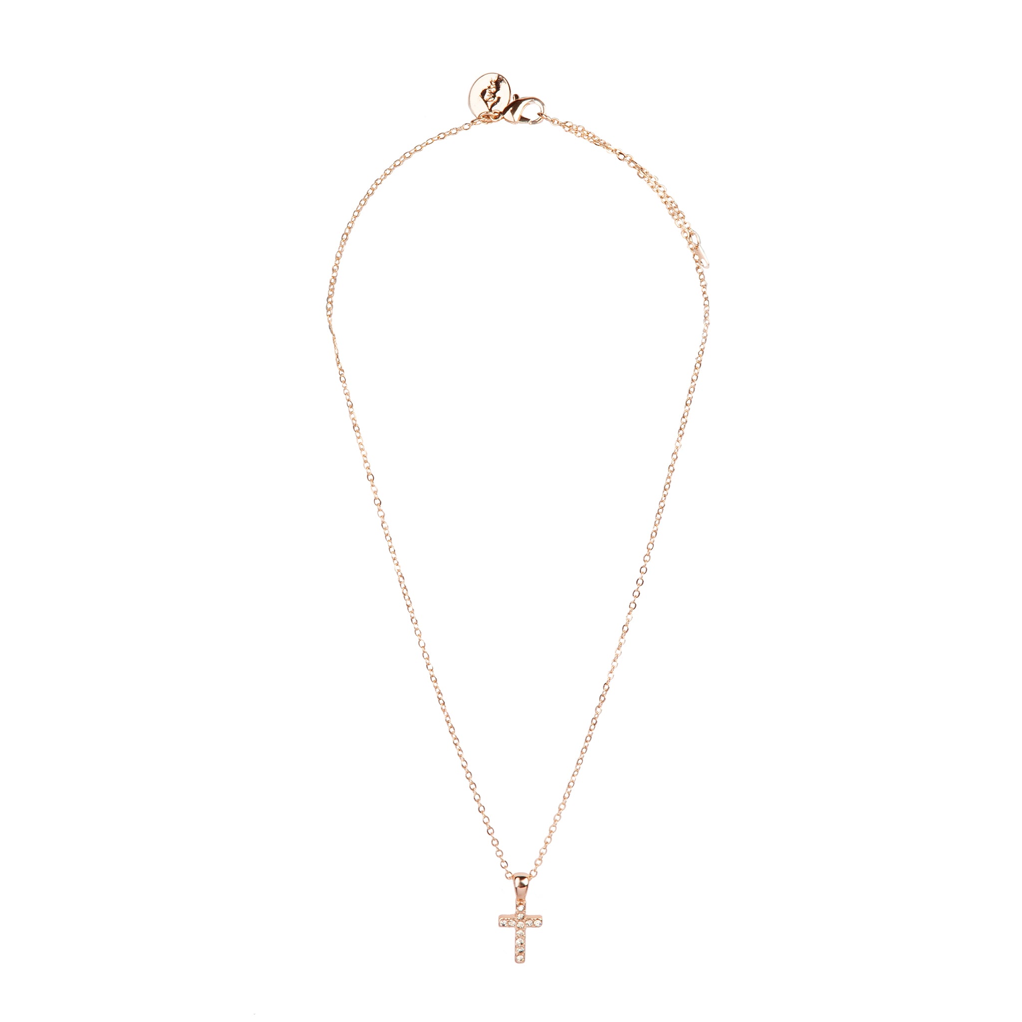 Focus on the finer things in life. This lovely rose gold-toned necklace features a diamante cross design. Wear with rose gold-toned hoops and a multi pack of dainty rings for an on-trend look.
