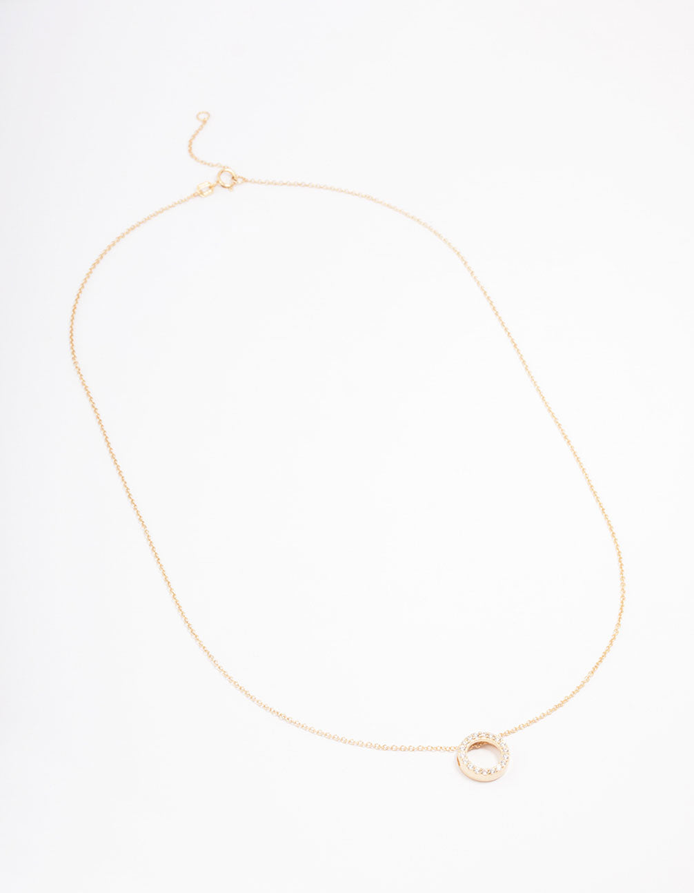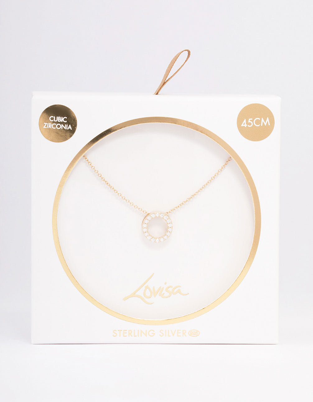 Gold Plated Pave Sterling Silver Circle Pendant Necklace