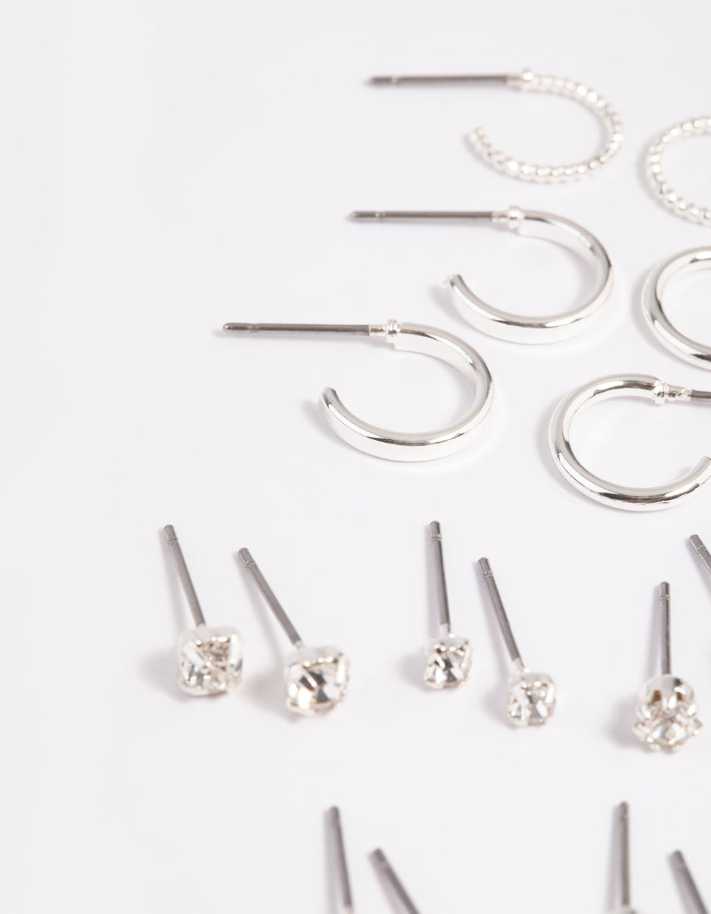Silver Diamante Stud & Hoop Earring 12-Pack