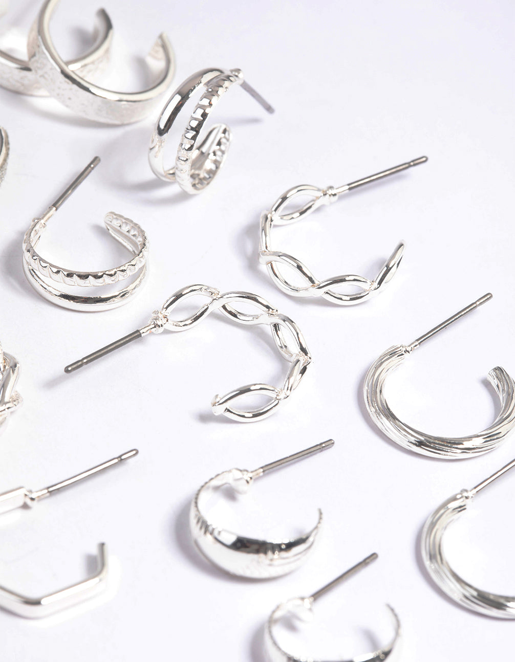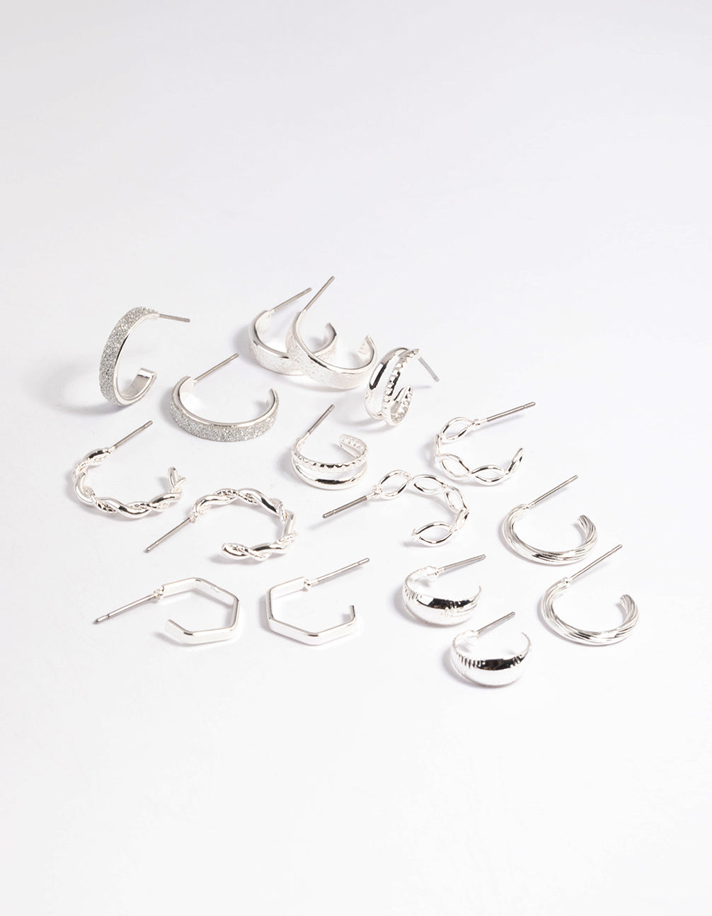 Silver Textured Glitter Hoop Earring 8-Pack