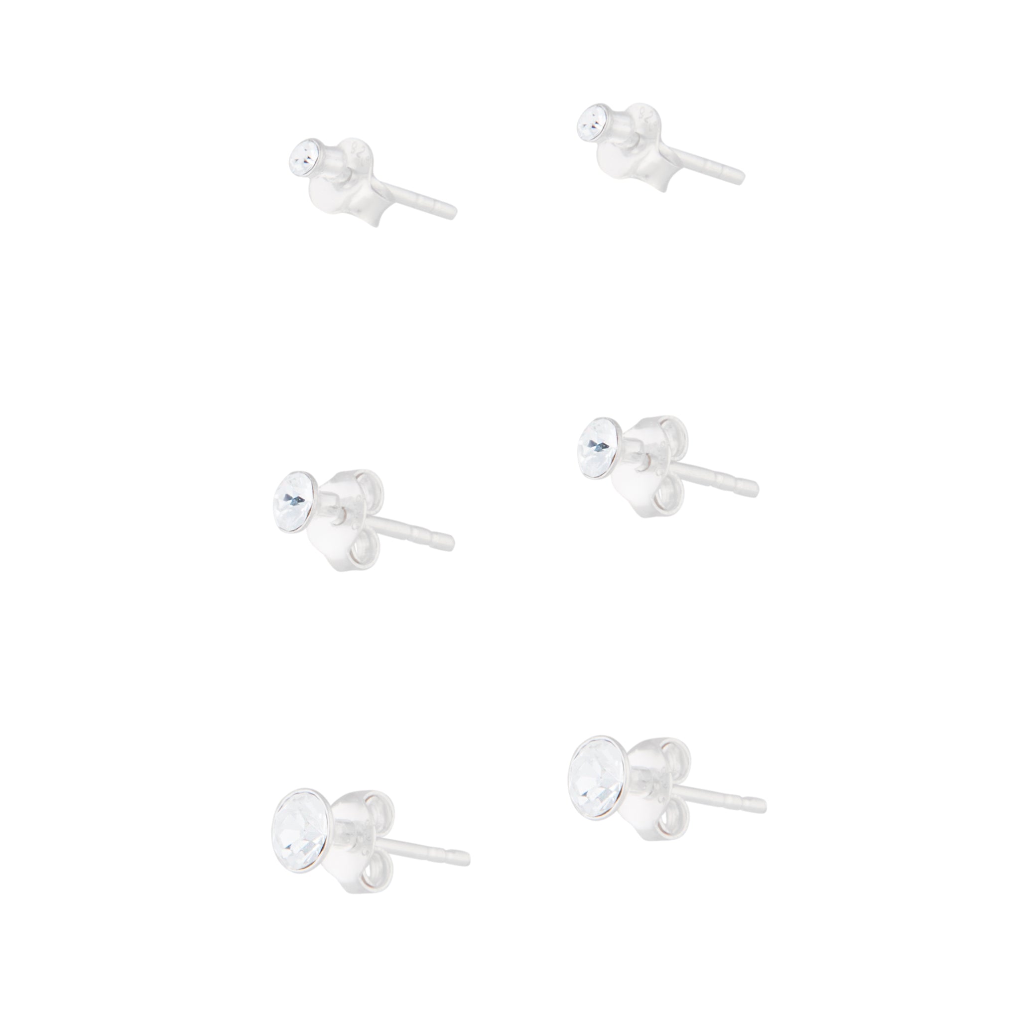 Sterling Silver Graduated Diamante Stud Pack