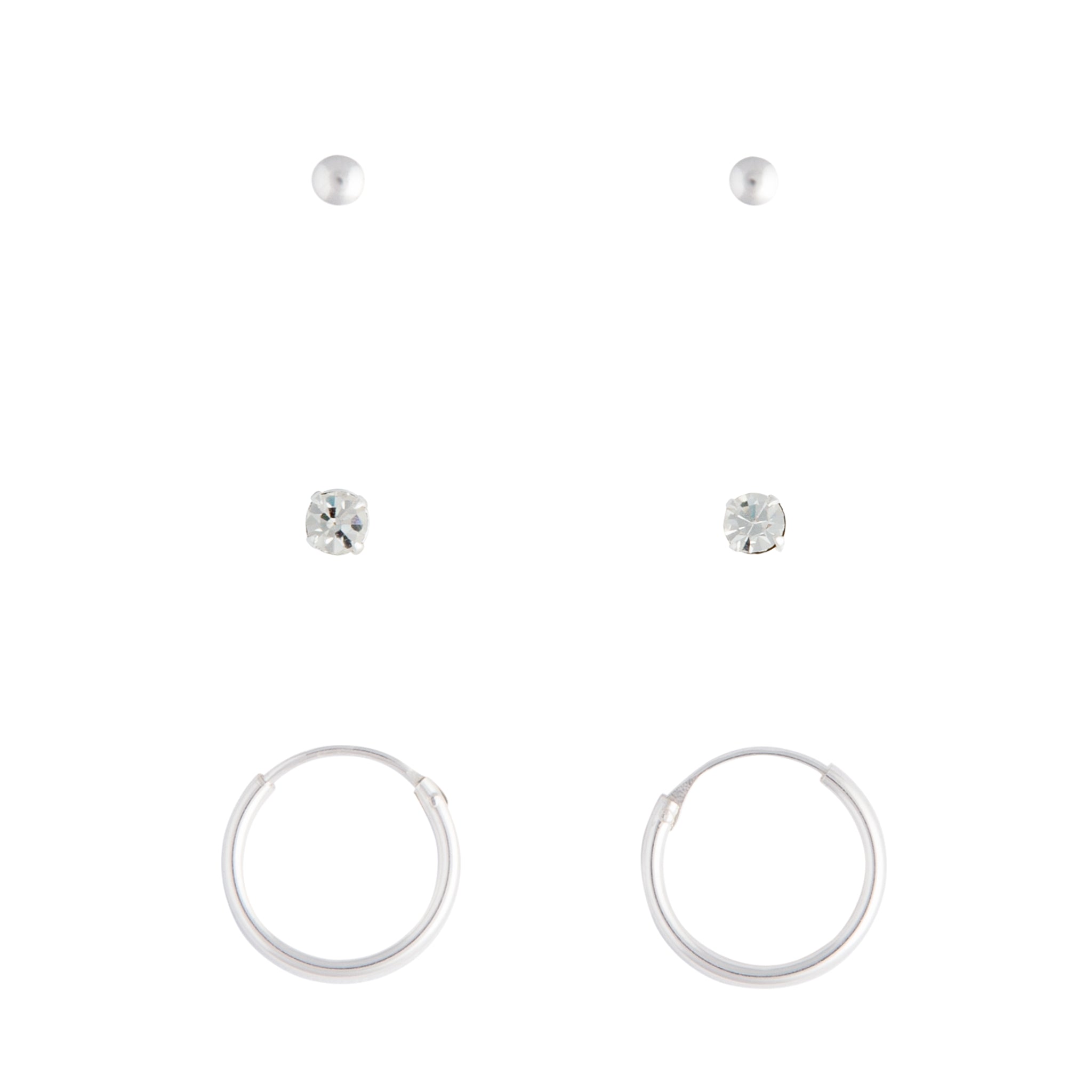 Sterling Silver Stud Diamante & Hoop Pack
