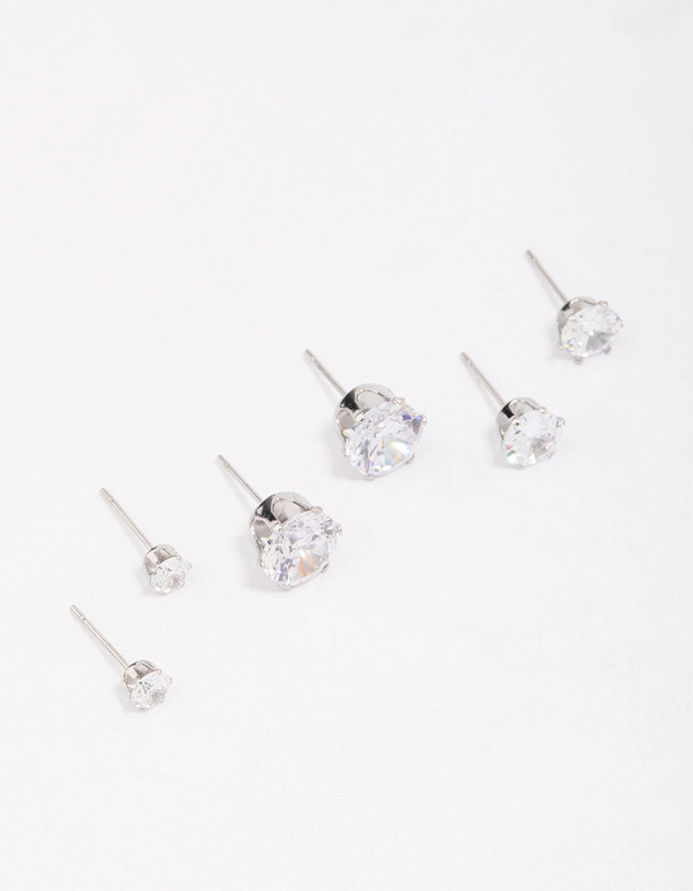 Waterproof Stainless Steel Graduating Cubic Zirconia Earring 3-Pack