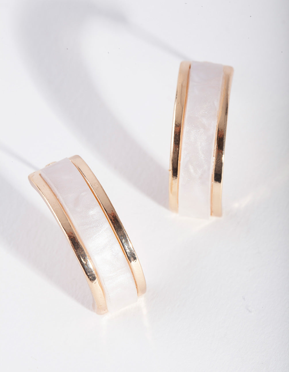 Gold White Curve Stud Earrings