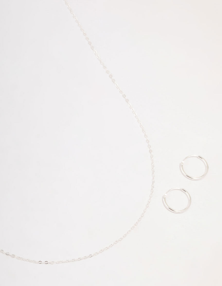Sterling Silver Chain Necklace & Hoop Earrings Set